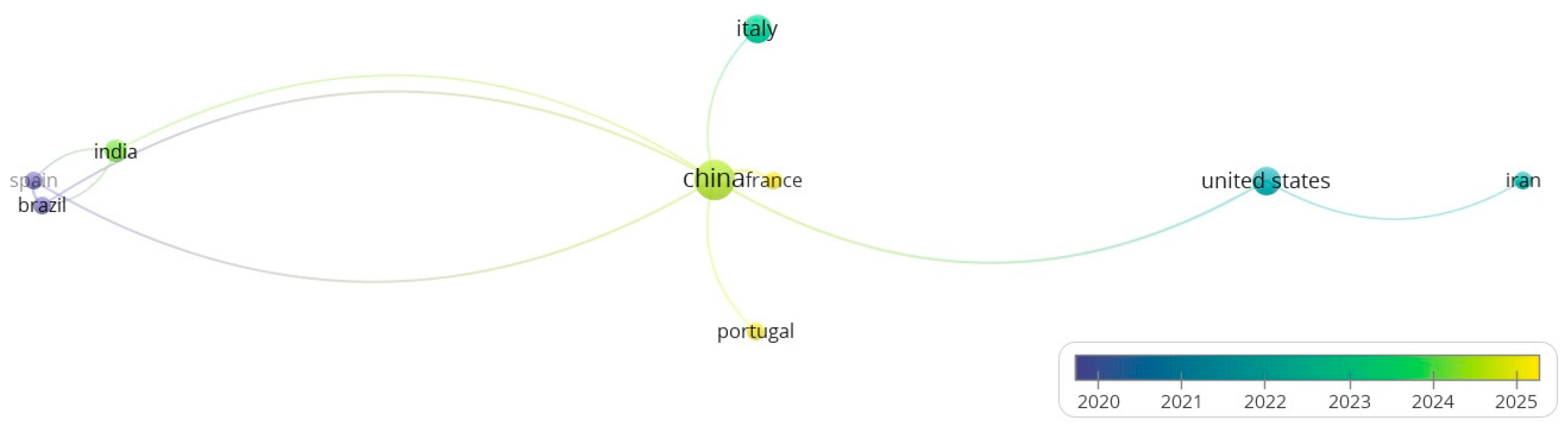 5.2. Geographical Distribution and Temporal Evolution of Scientific Production