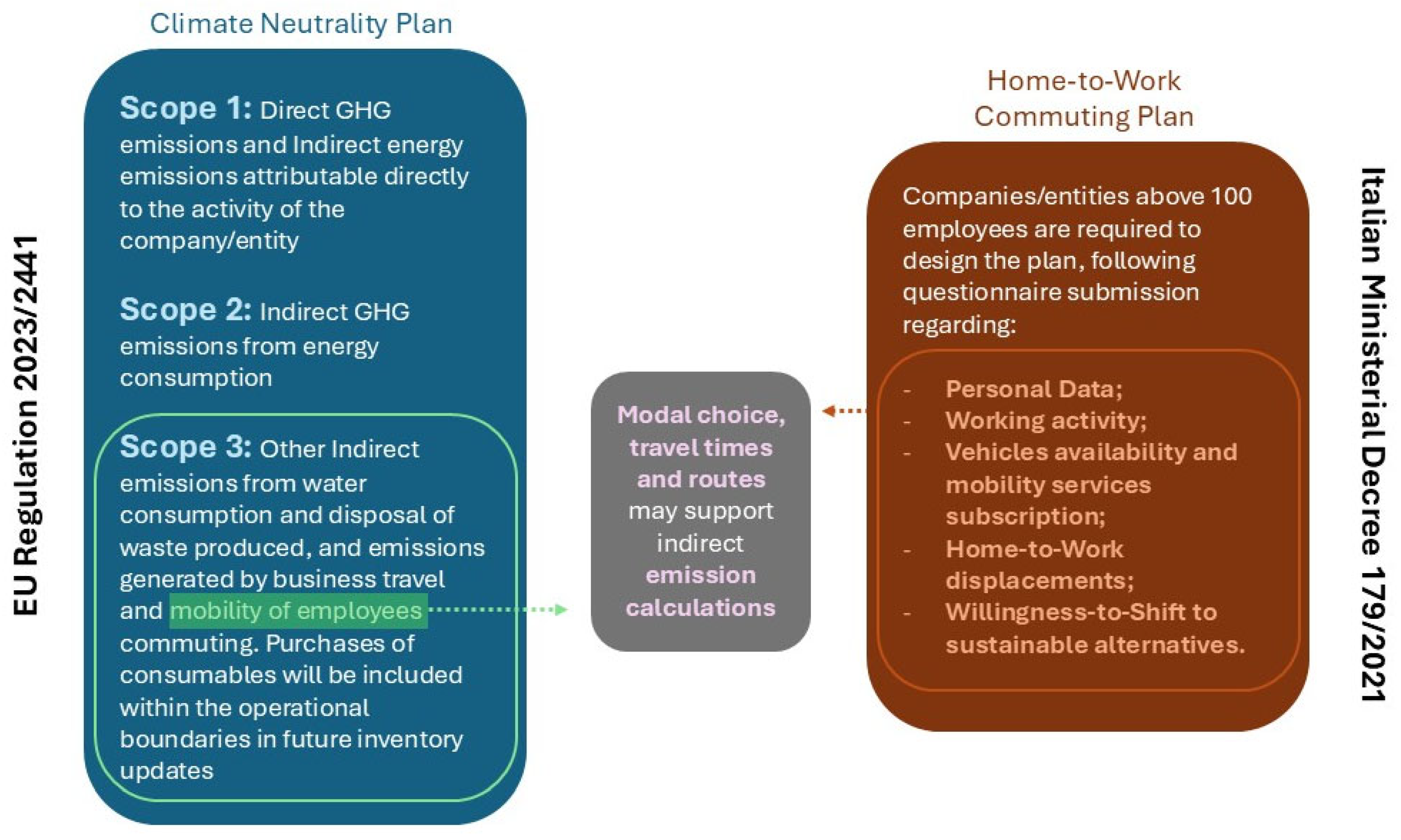 - Scope 3: Other indirect emissions from water consumption and disposal of waste produced, and emissions generated by business travel and mobility of employees commuting. Purchases of consumables will be included within the operational boundaries in future inventory updates [31].