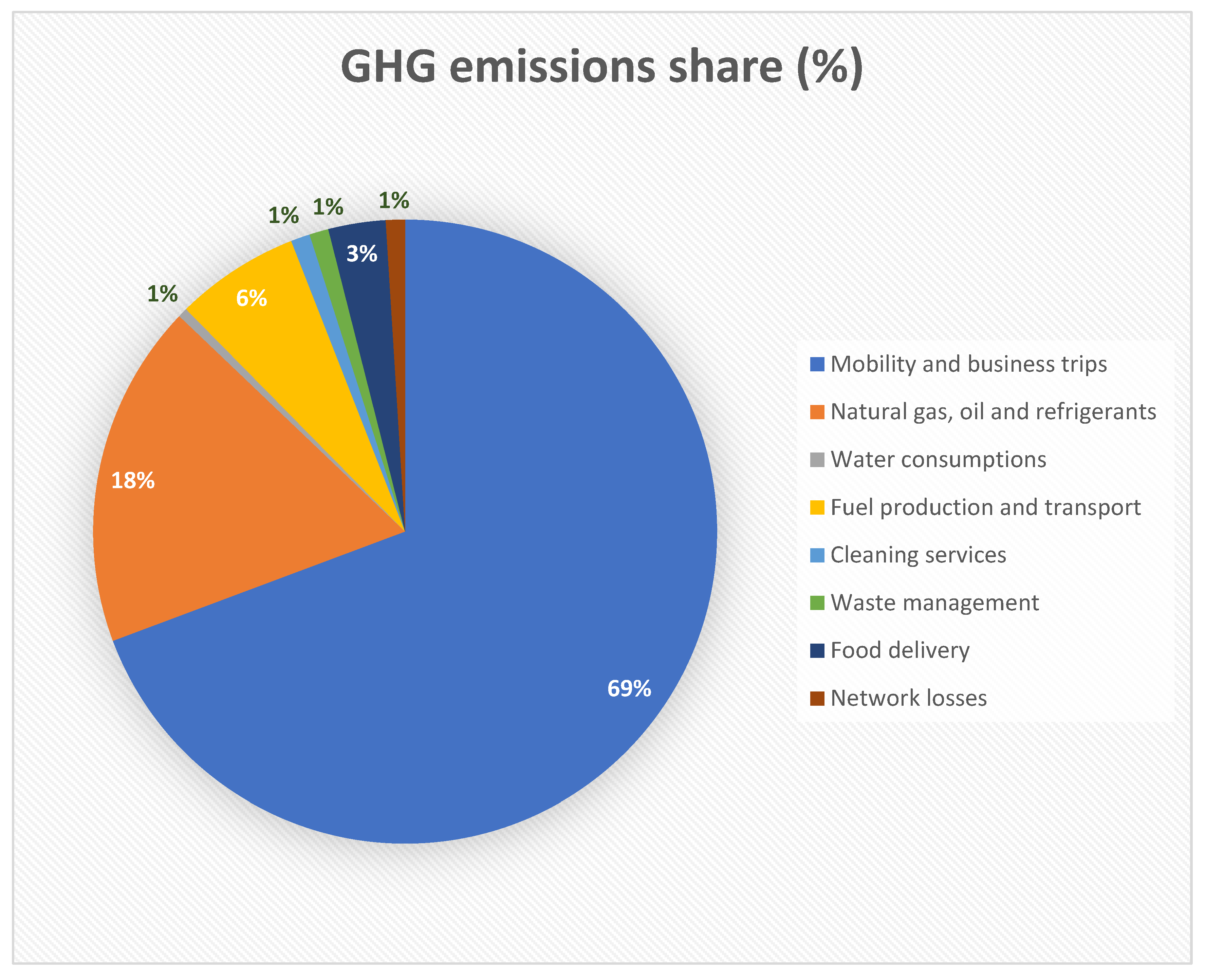 - Scope 1: Direct GHG emissions and indirect energy emissions attributable directly to the activity of the company/entity (emissions from natural gas and diesel fuel and refrigerant gas losses due to periodic maintenance of air conditioning systems and the vehicle fleet) [30].
