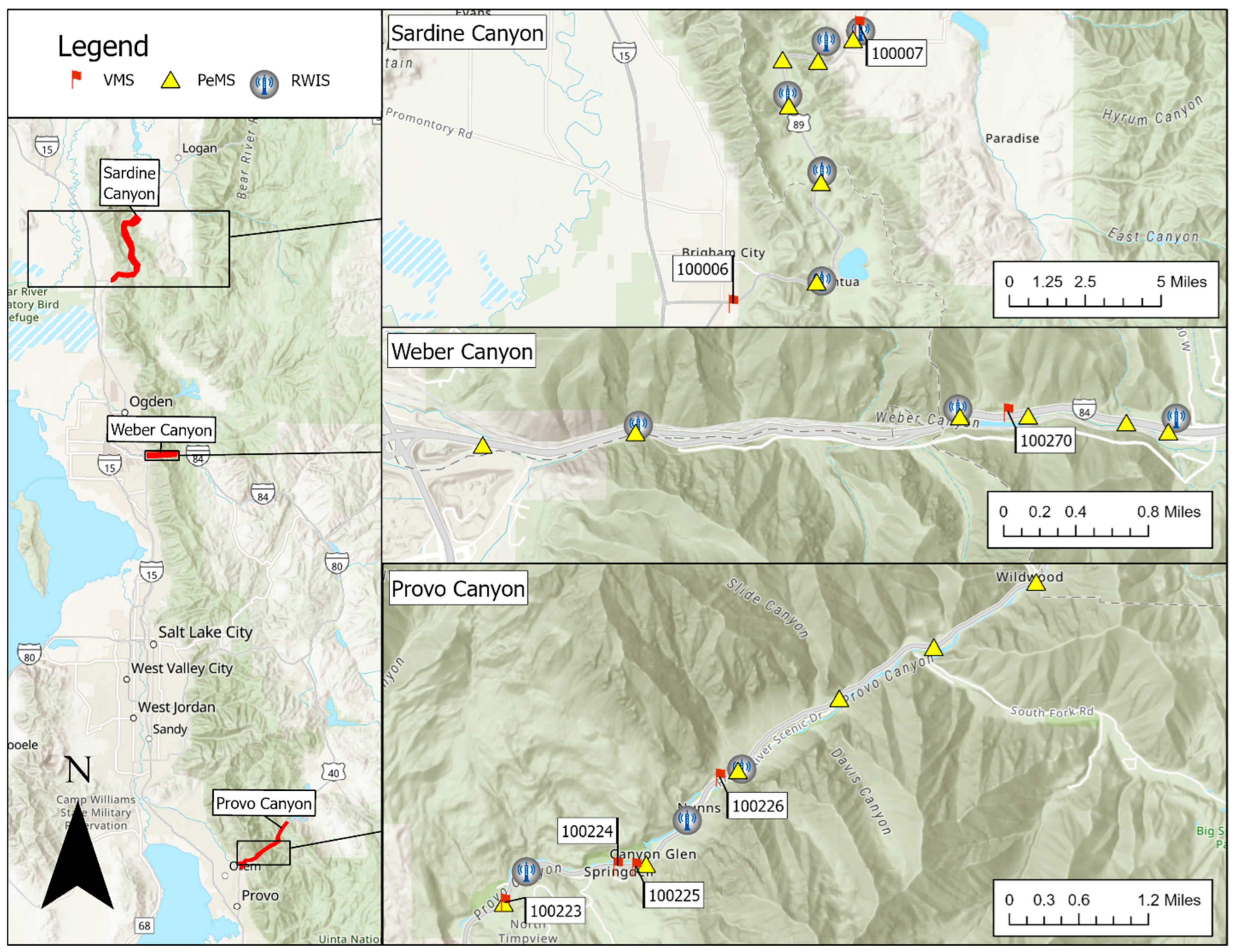 - Schultz, G.G.; Davis, M.C.; Hill, A.; Snow, G.L. Effectiveness of ITS on Utah Roadways; Report UT-23.20; Utah Department of Transportation, Research & Innovation: Salt Lake City, UT, USA, 2023.