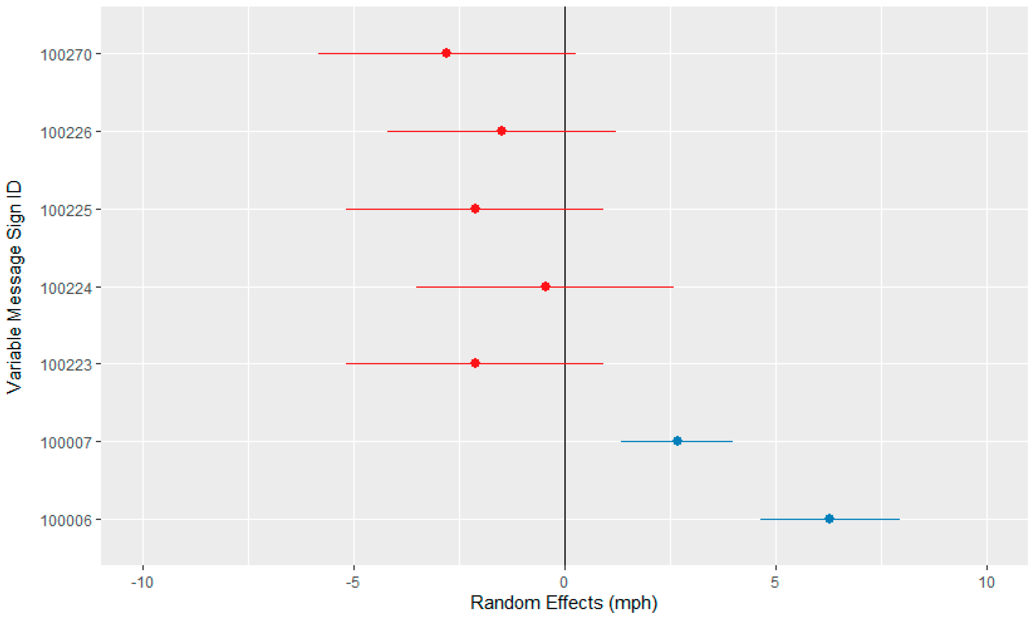 | Sui and Young; 2014 [22] | WY, USA | With-and-Without | VMS speed reductions range from 5 mph to 20 mph above reductions caused by weather |