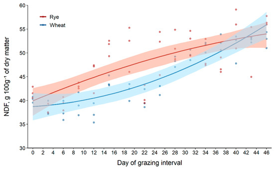 - Edmisten, K.L.; Green, J.T.; Mueller, J.P.; Burns, J.C. Winter annual small grain forage potential. II. Quantification of nutritive characteristics of four small grain species at six growth stages. Commun. Soil Sci. Plant Anal. 1998, 29, 881–899. [Google Scholar] [CrossRef]