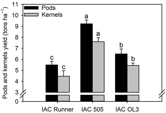 | IAC 505 | 18.9 ± 2.1 a | 17.3 ± 0.7 a | 40.1 ± 0.5 b | 29.9 ± 0.4 ab | 30.5 ± 1.0 a |
