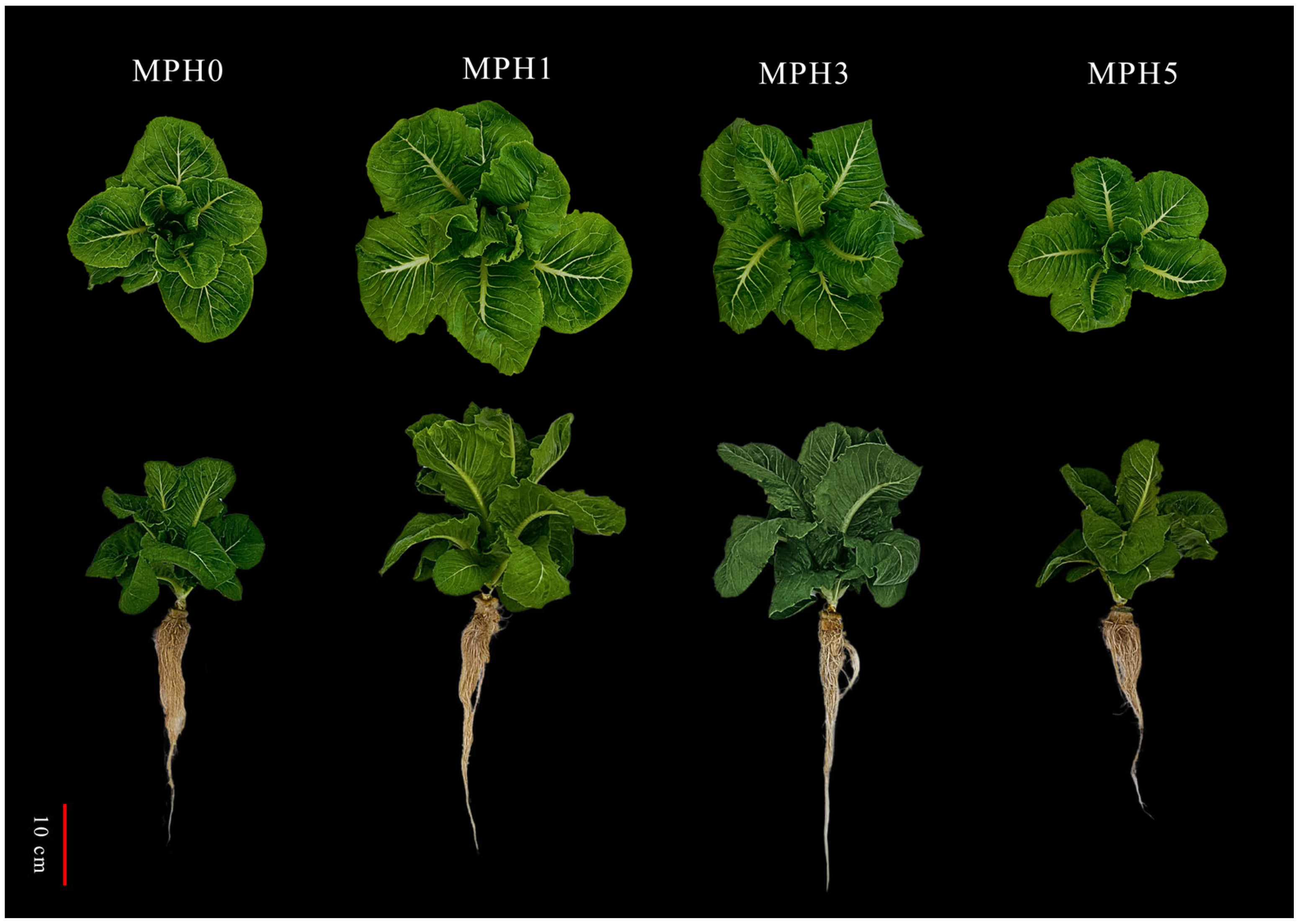 4.2. MPH-Induced Changes in Cos Lettuce Biomass and Canopy