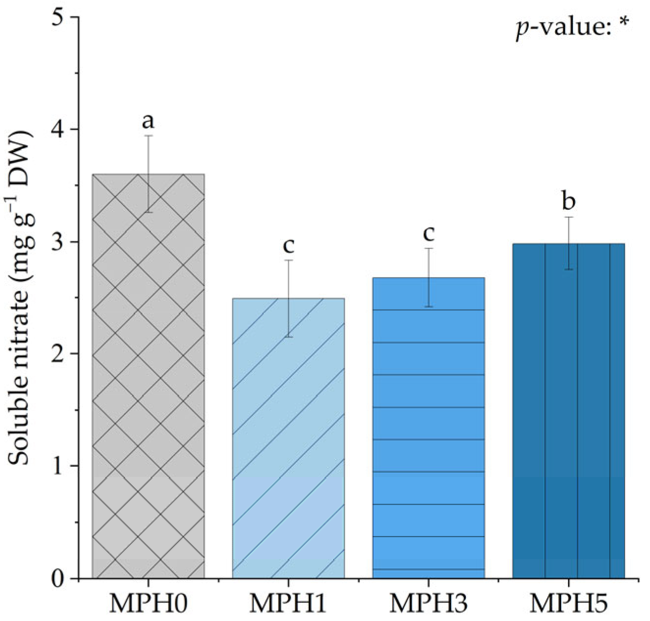 3.5. Effect of MPH on Soluble Nitrate Content