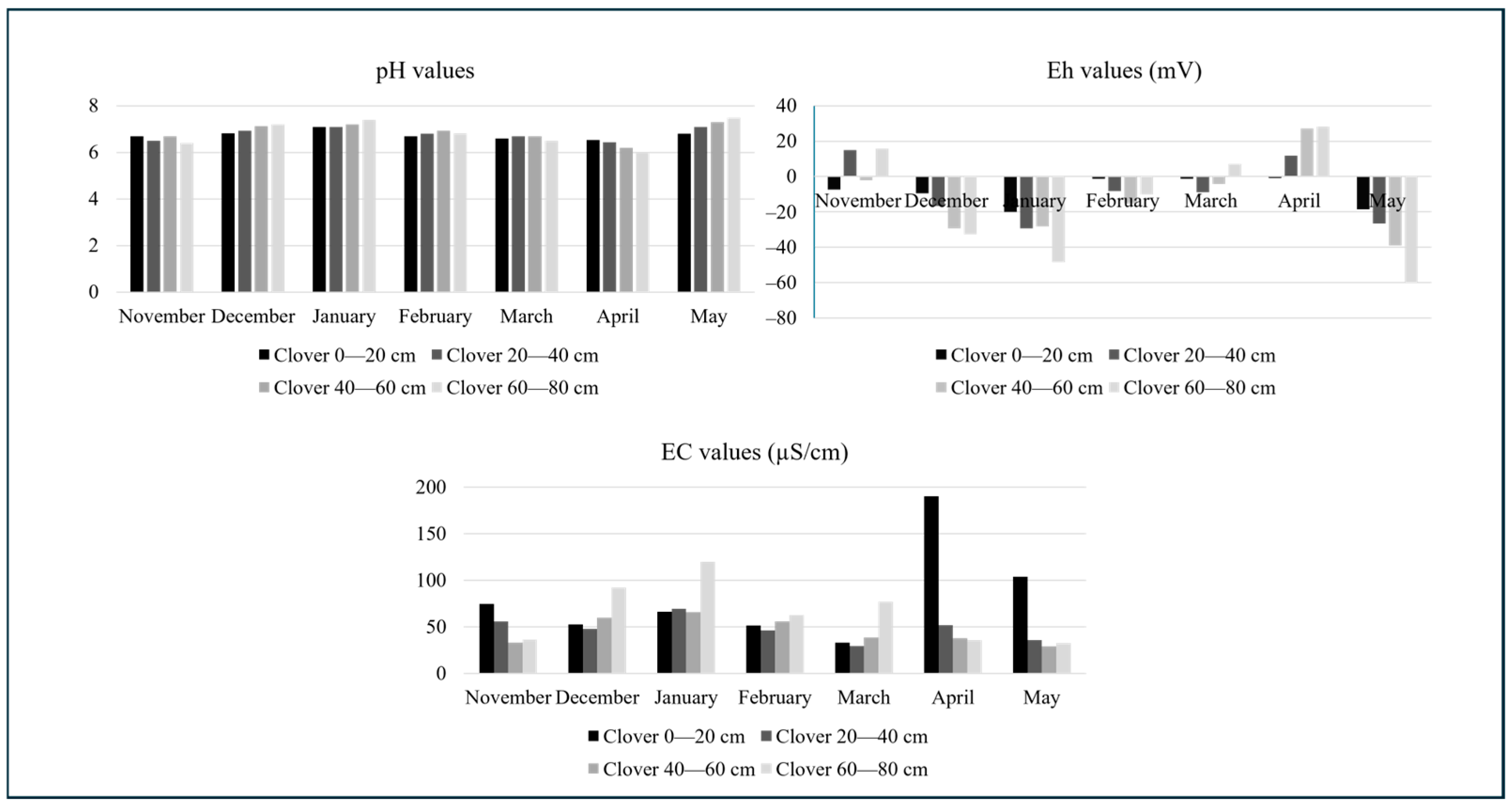 - Mansfeldt, T. In situ long-term redox potential measurements in a dyked marsh soil. J. Plant Nutr. Soil Sci. 2003, 166, 210–219. [Google Scholar] [CrossRef]