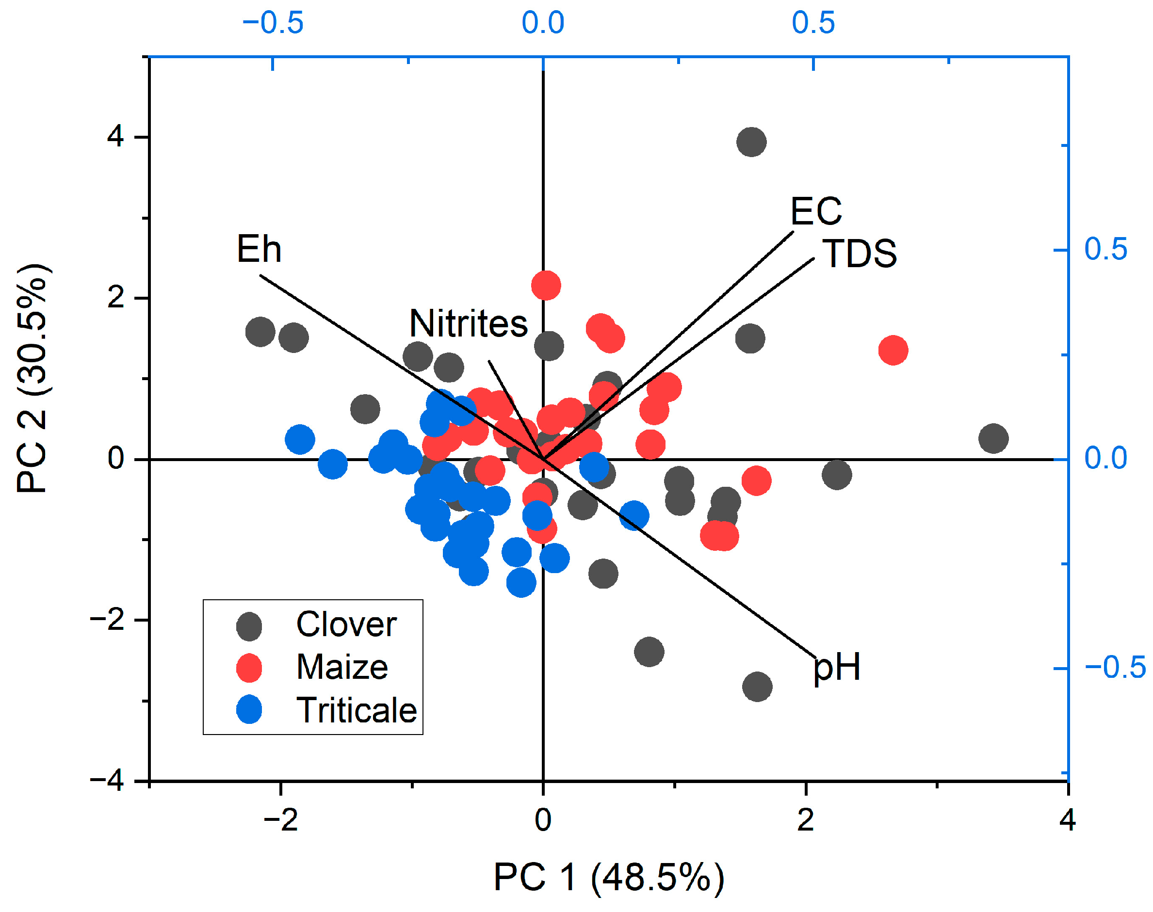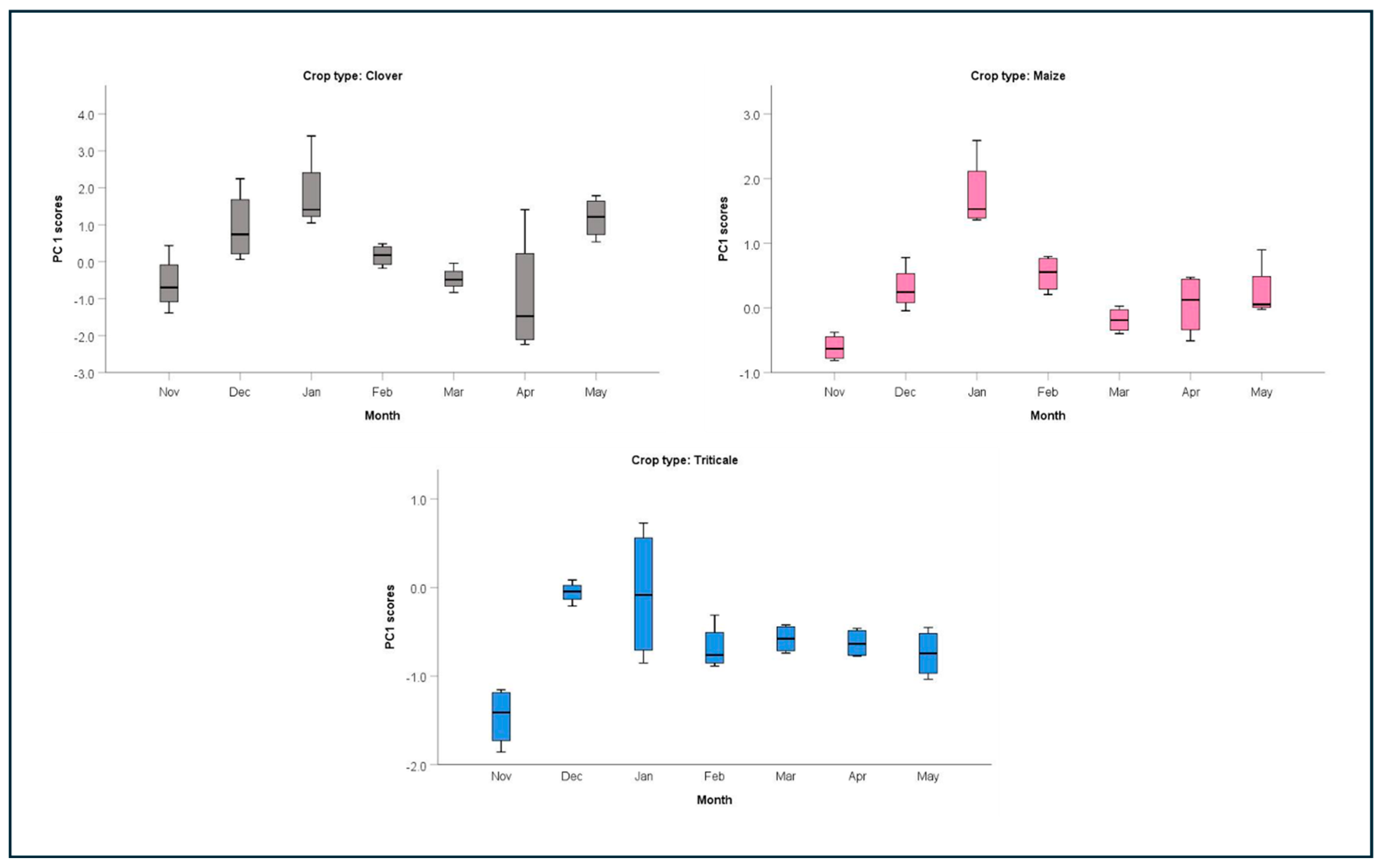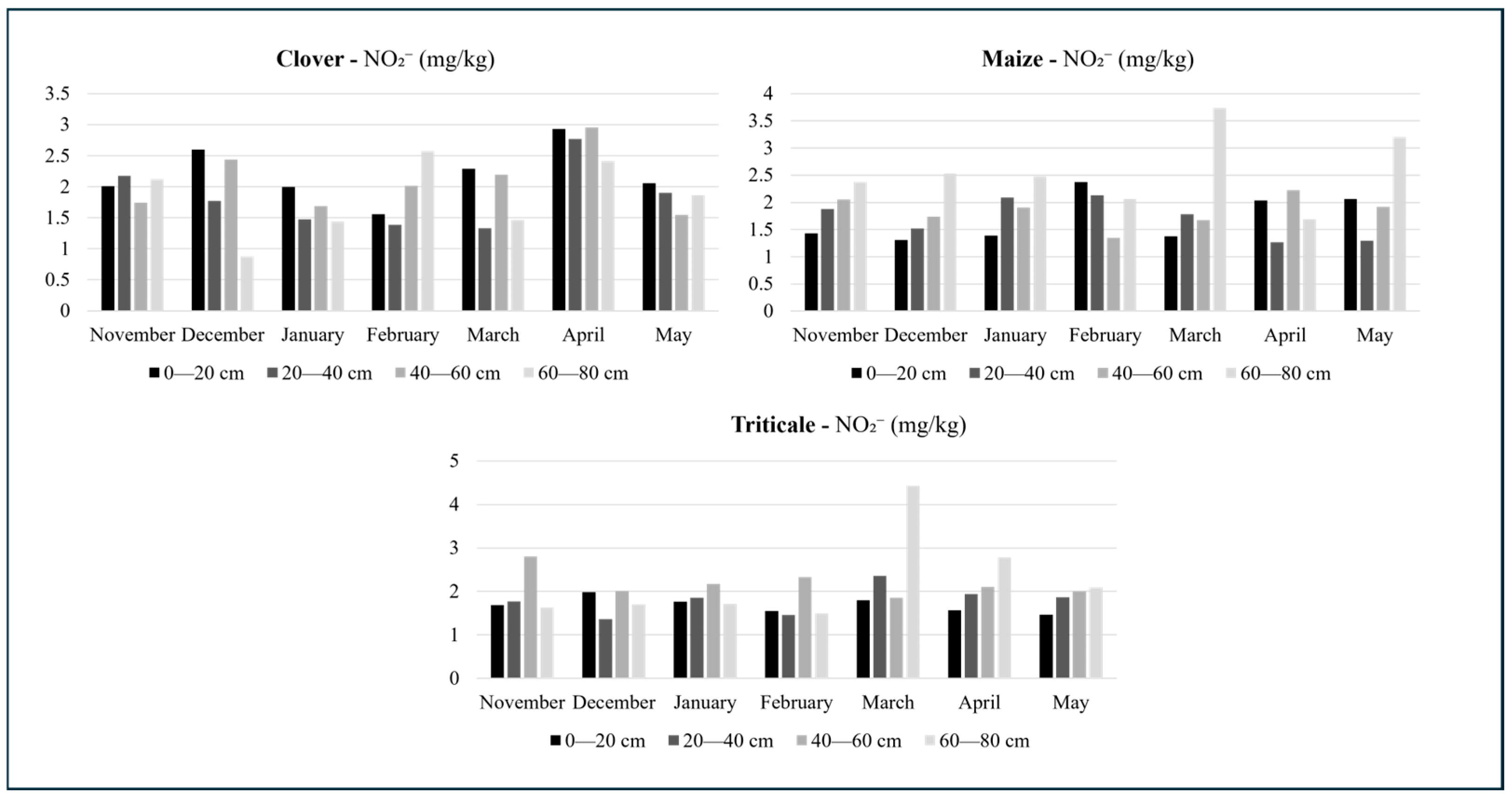 3.2. Nitrites in Soil Under Clover, Maize and Triticale Crops