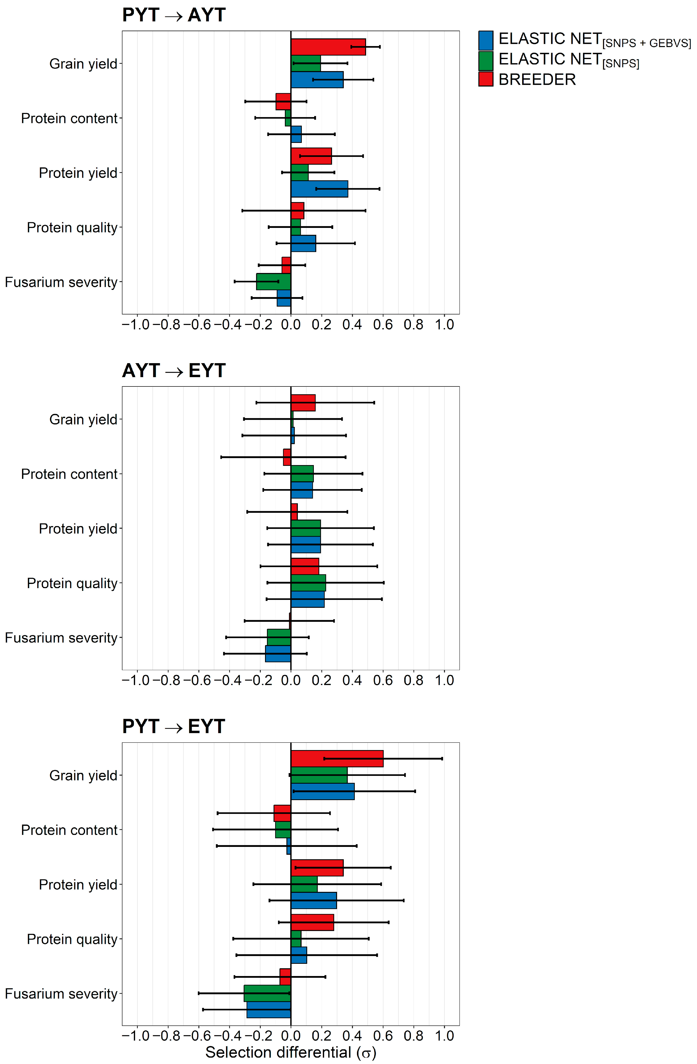 2.3. Comparison of the Breeder’s Selection Decisions and Elastic Net’s Recommendations