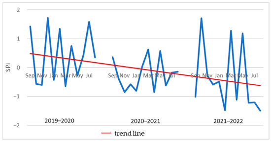 Standardized precipitation index (SPI) values for 2019–2022.