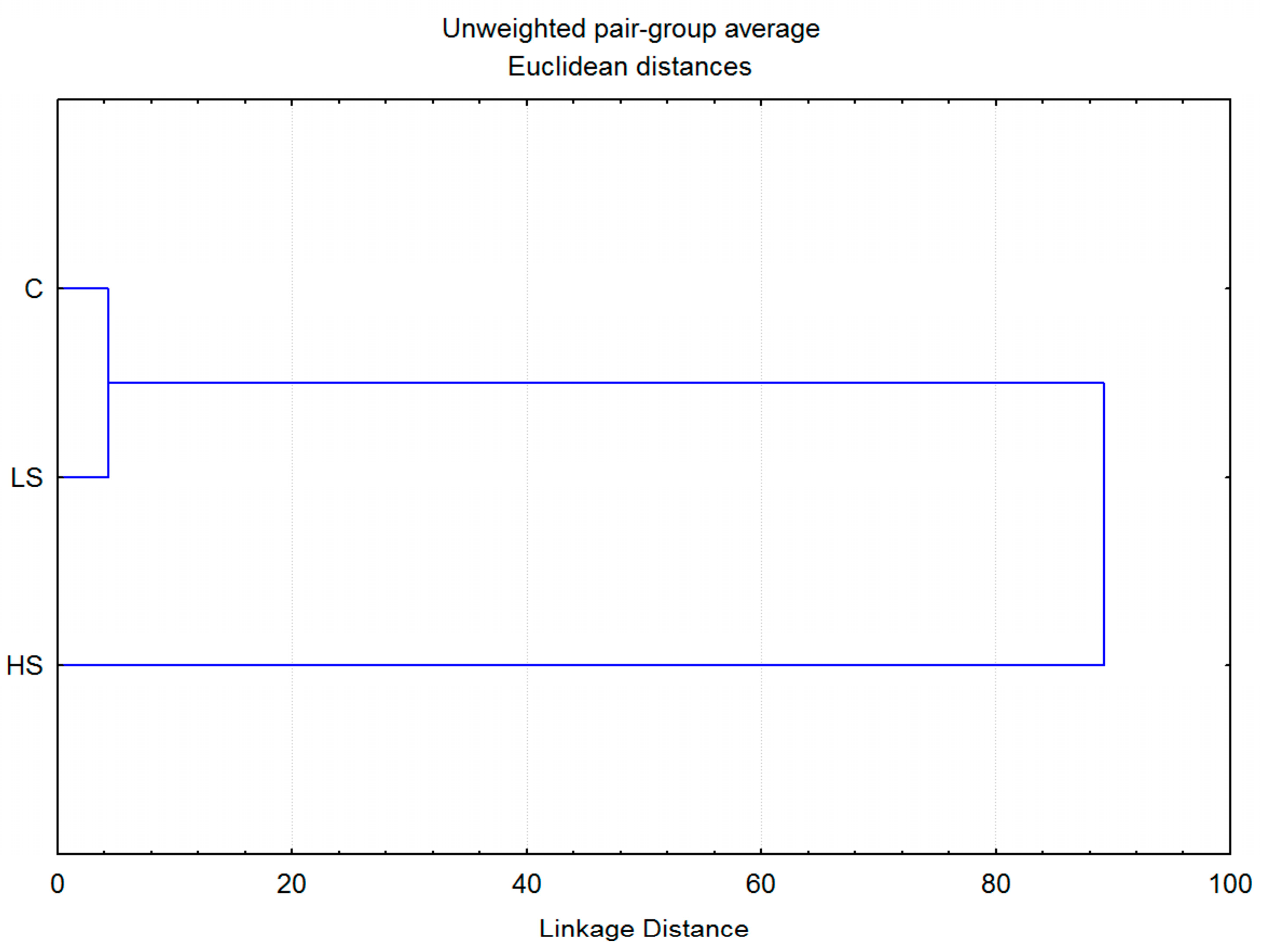 3.3. Multivariate Analyses (CDA and CA) of V. Faba Biochemical Stress Parameters