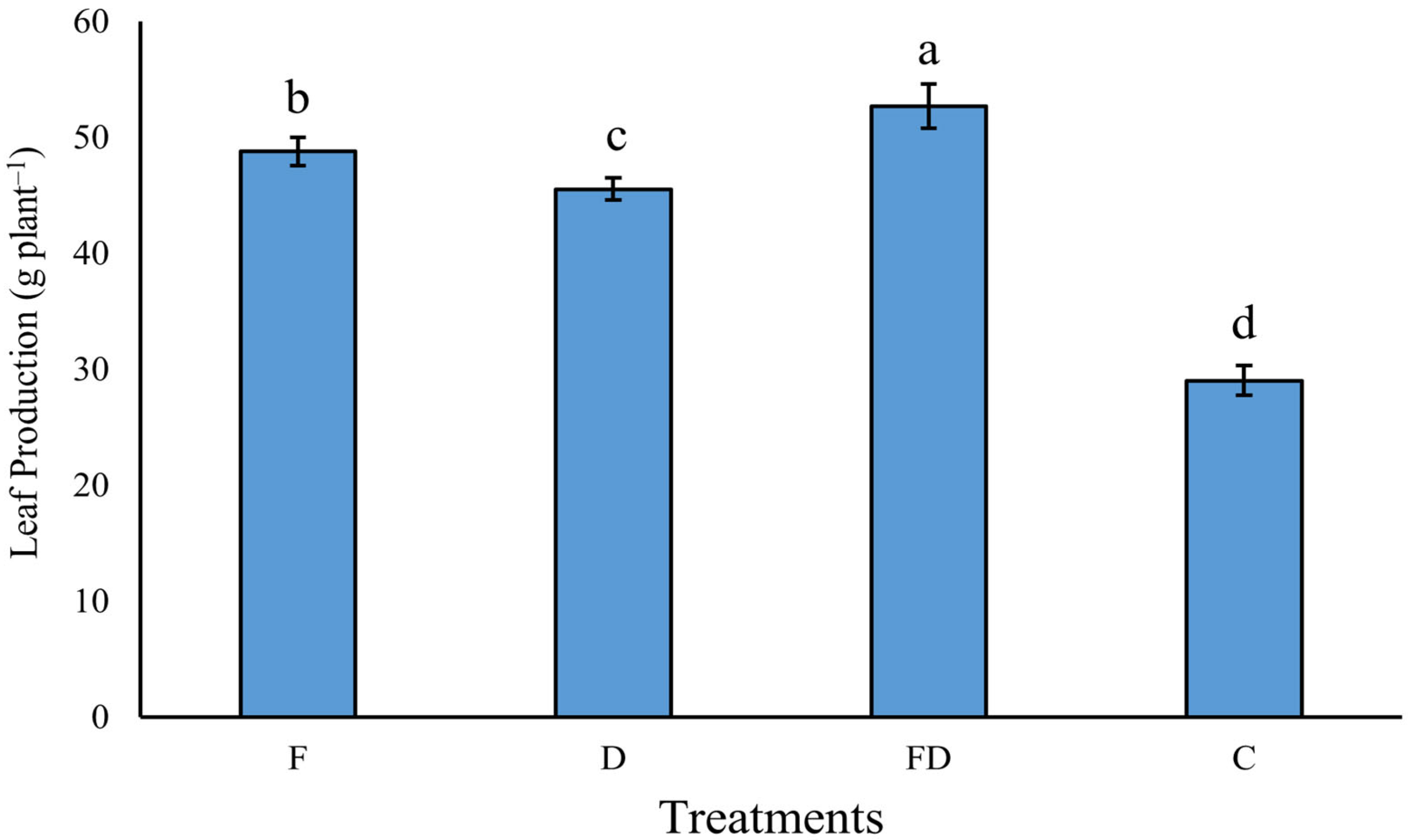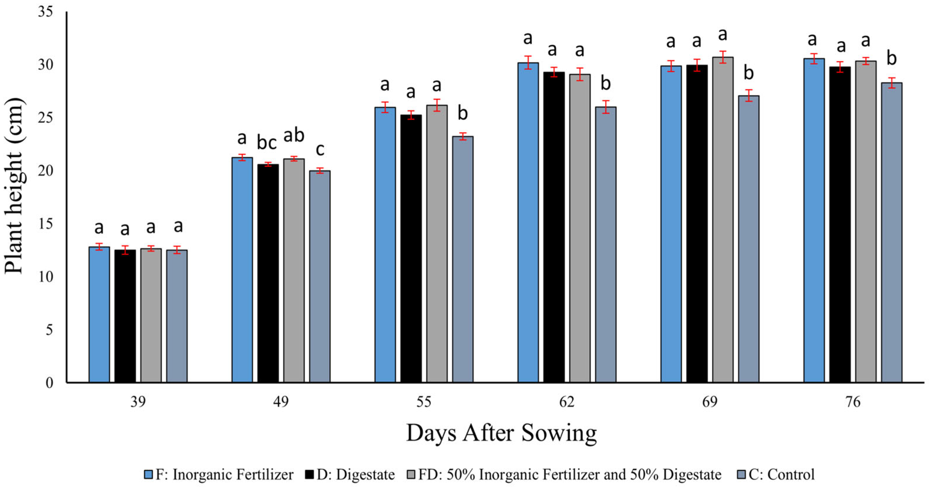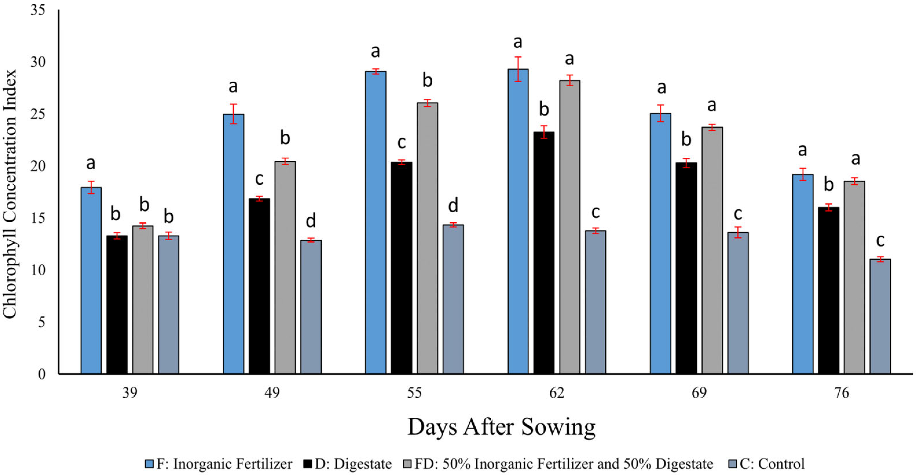| Nitrate Nitrogen (N-NO3) | mg kg−1 | 48.60 a | 43.70 b | 50.50 a | 12.35 c |