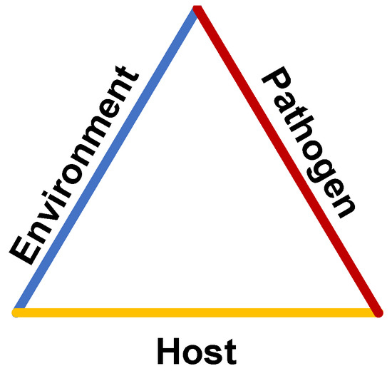 The epidemiological triad of disease transmission.