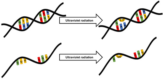 - Sinha, R.P.; Häder, D.P. UV-Induced DNA Damage and Repair: A Review. Photochem. Photobiol. Sci. Off. J. Eur. Photochem. Assoc. Eur. Soc. Photobiol. 2002, 1, 225–236. [Google Scholar] [CrossRef] [PubMed]