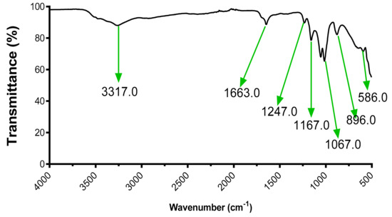 FTIR was used to analyse functional groups of the purified bioflocculant using the Tensor 27, Bruker FT-IR spectrophotometer with a resolution of 4 cm−1 in the range of 4000–400 cm−1. About 5 mg of the bioflocculant was mixed with potassium bromide powder and pressed into pellets [33].