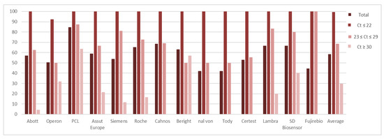Representation of sensitivity percentage of each test by cycle threshold (Ct).