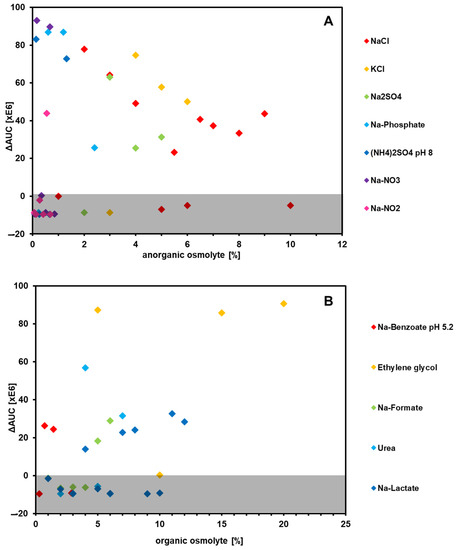 As mentioned above, the type strain was isolated from a wastewater treatment plant, which would explain its high osmotic tolerance to a wide range of osmolytes. Even NaCl levels of 10% did not negatively affect the respiration of this strain. Other organic osmolytes also had little suppressive influence, and ethylene glycol showed a clear positive effect over the negative control. It can be assumed that P. pantotrophus possesses an effective osmoregulation apparatus, similar to that of other halotolerant organisms, which works for different kinds of ions [71].