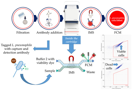 - Füchslin, H.P.; Kötzsch, S.; Keserue, H.; Egli, T. Rapid and Quantitative Detection of Legionella pneumophila Applying Immunomagnetic Separation and Flow Cytometry. Cytometry A 2010, 77A, 264–274. [Google Scholar] [CrossRef] [PubMed]