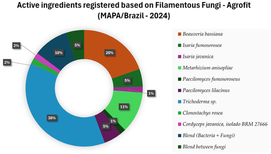 Active ingredients registered in Brazil based on Filamentous Fungi for pest and disease control [9].