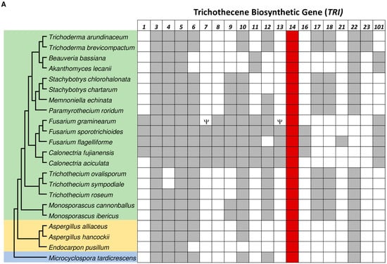 2.2. Identification of TRI Gene Orthologs in Fungi
