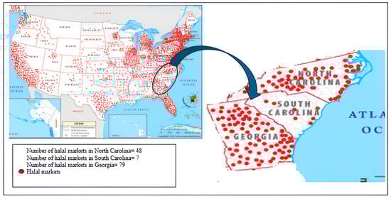 Geographic distribution of the halal food markets in the United States [2].