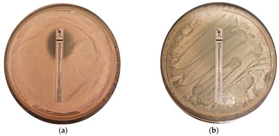 In the E-test, the MIC of fluconazole for P. kudriavzevii ZMUM_K002 was 16 mg/L of the fluconazole concentration, causing a fully clear inhibition zone (Figure 2a). The fluconazole MIC for S. cerevisiae ZMUM_K003 could not be determined, as no clear inhibition zone was visible; however, reduced growth could be observed at 2 mg/L (Figure 2b).