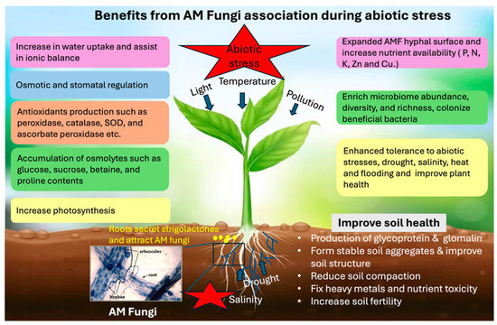 4.3. Contribution of AM Fungi to Mitigate Enviornmental Stresses