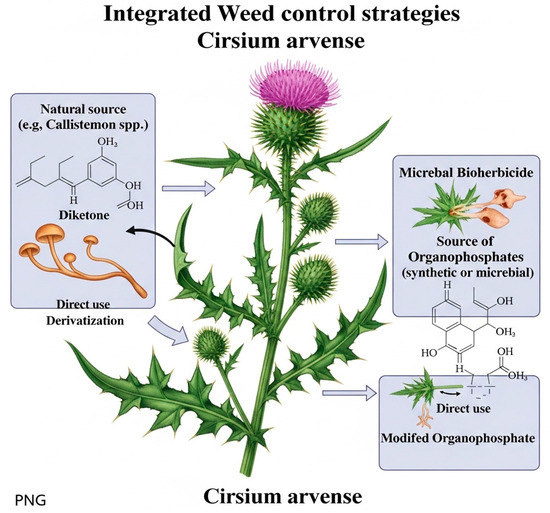 - Duke, S.O.; Pan, Z.; Bajsa-Hirschel, J.; Douglas, B.C. The potential future roles of natural compounds and microbial bioherbicides in weed management in crops. Adv. Weed Sci. 2022, 40, e020210054. [Google Scholar] [CrossRef]