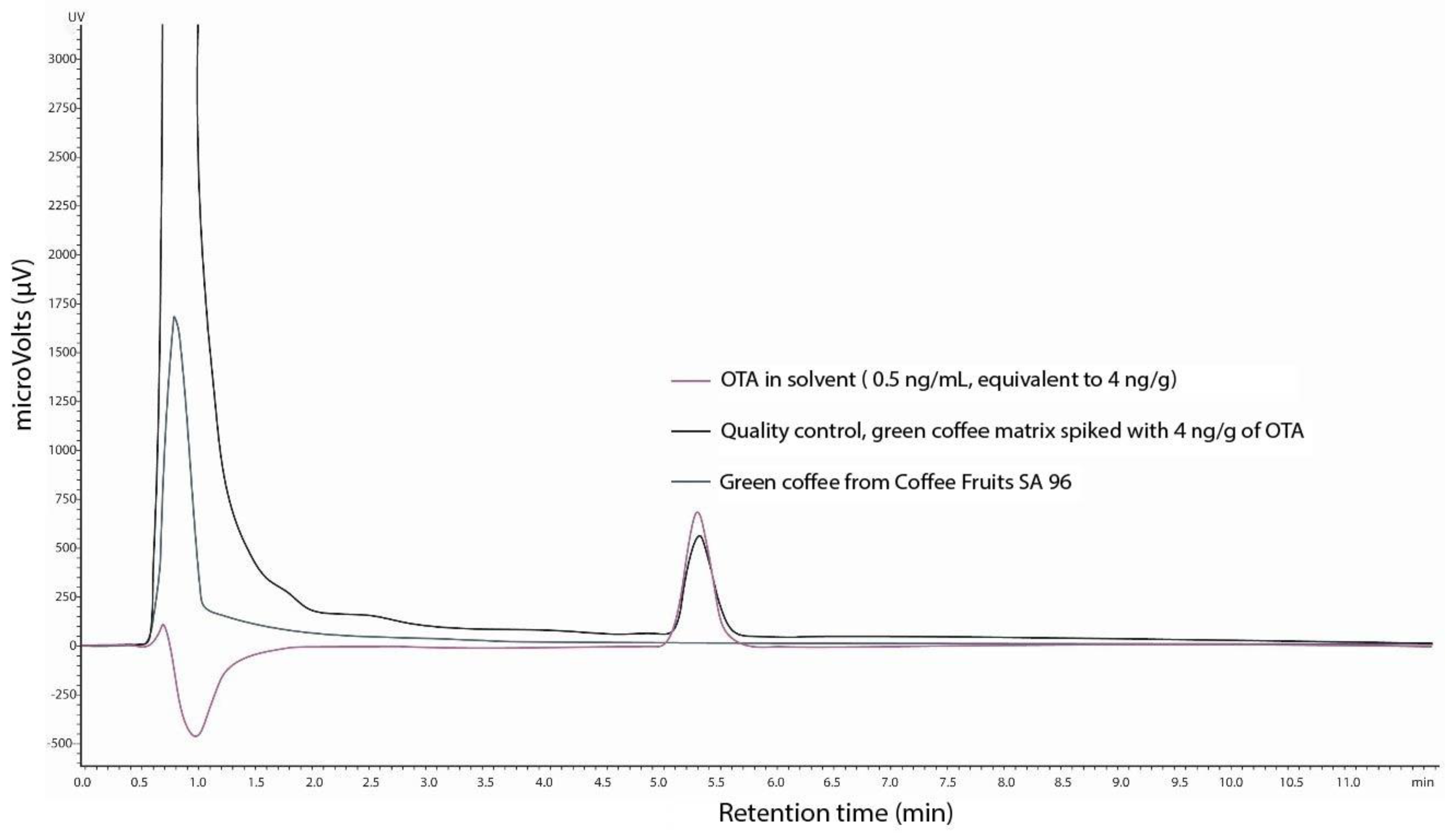 - AOAC 2004.10-2008; Ochratoxin A in Green Coffee. AOAC International: Rockville, MD, USA, 2004.