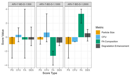 Each vial was scored via an in-house developed degradation performance and enhancement rubric. Rubric categories included particle size changes, CFU/mL percent changes, weight loss, and FA composition changes. Each category was scored between 1 and 5 with a strict set of predefined criteria. The scoring rubrics used can be found in the supplemental materials (Supplementary Tables S4–S8).