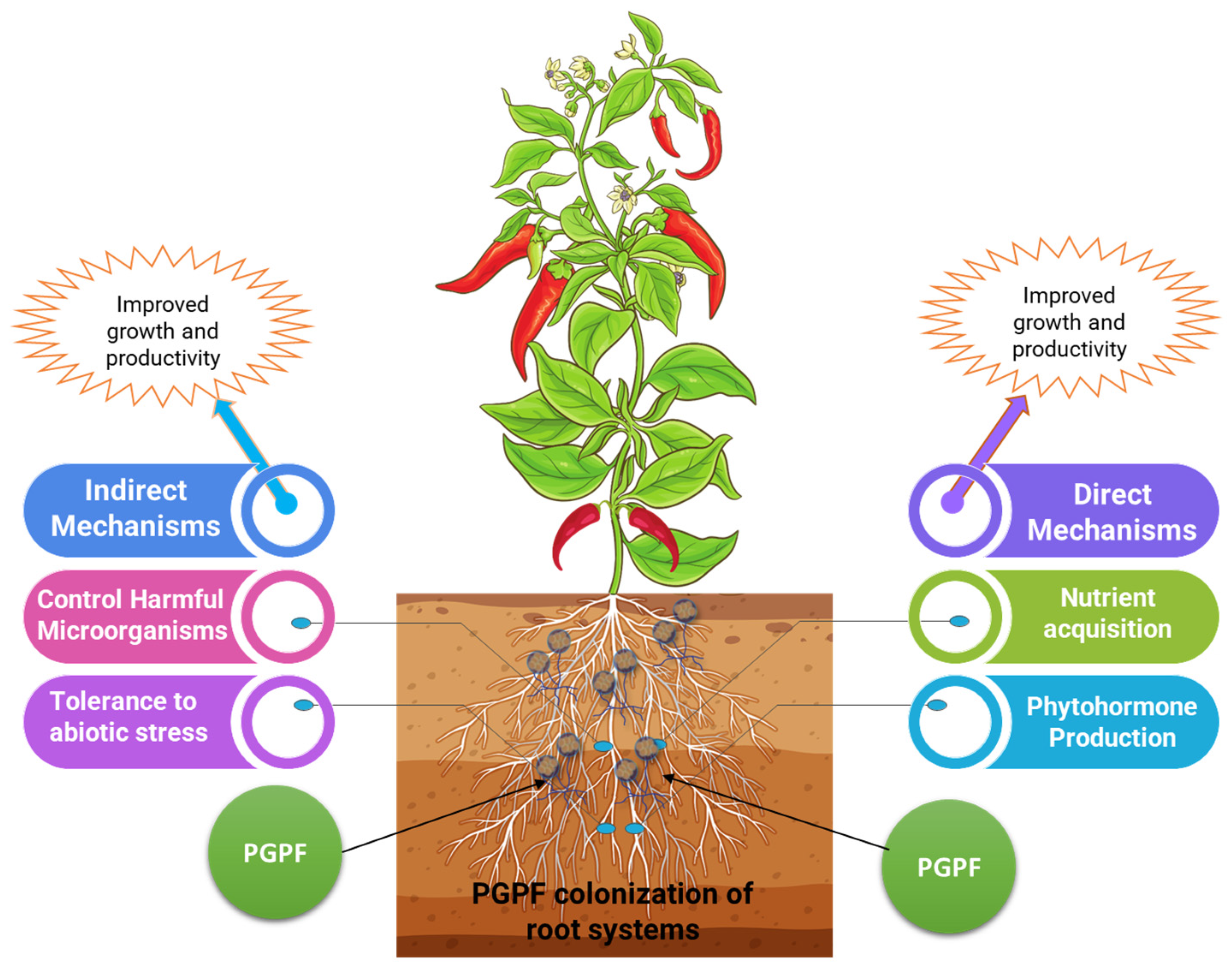 3. Functional and Ecological Roles of PGPF in the Rhizosphere