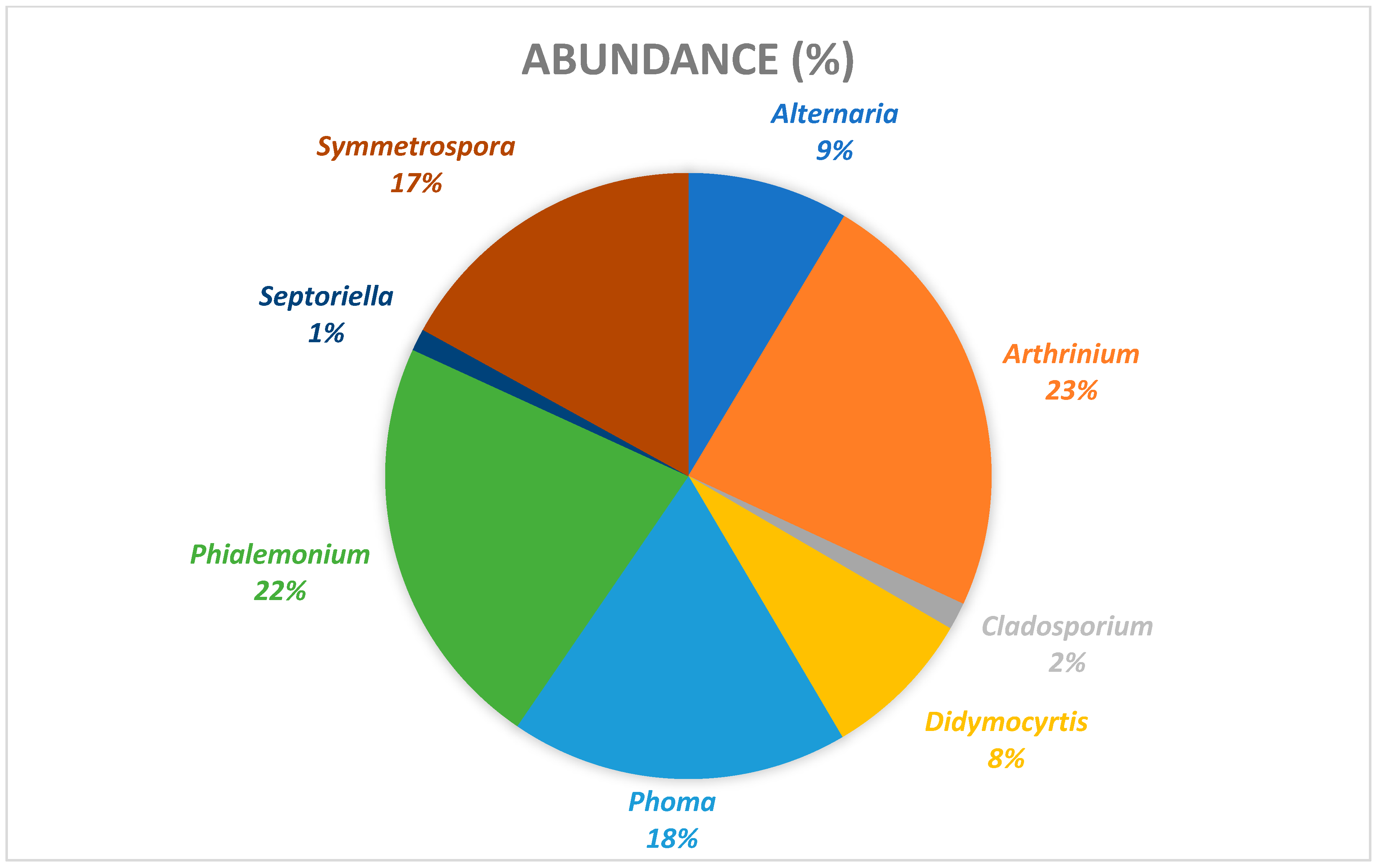 - Crous, P.W.; Groenewald, J.Z. A phylogenetic re-evaluation of Arthrinium. IMA Fungus 2013, 4, 133–154. [Google Scholar] [CrossRef] [PubMed]