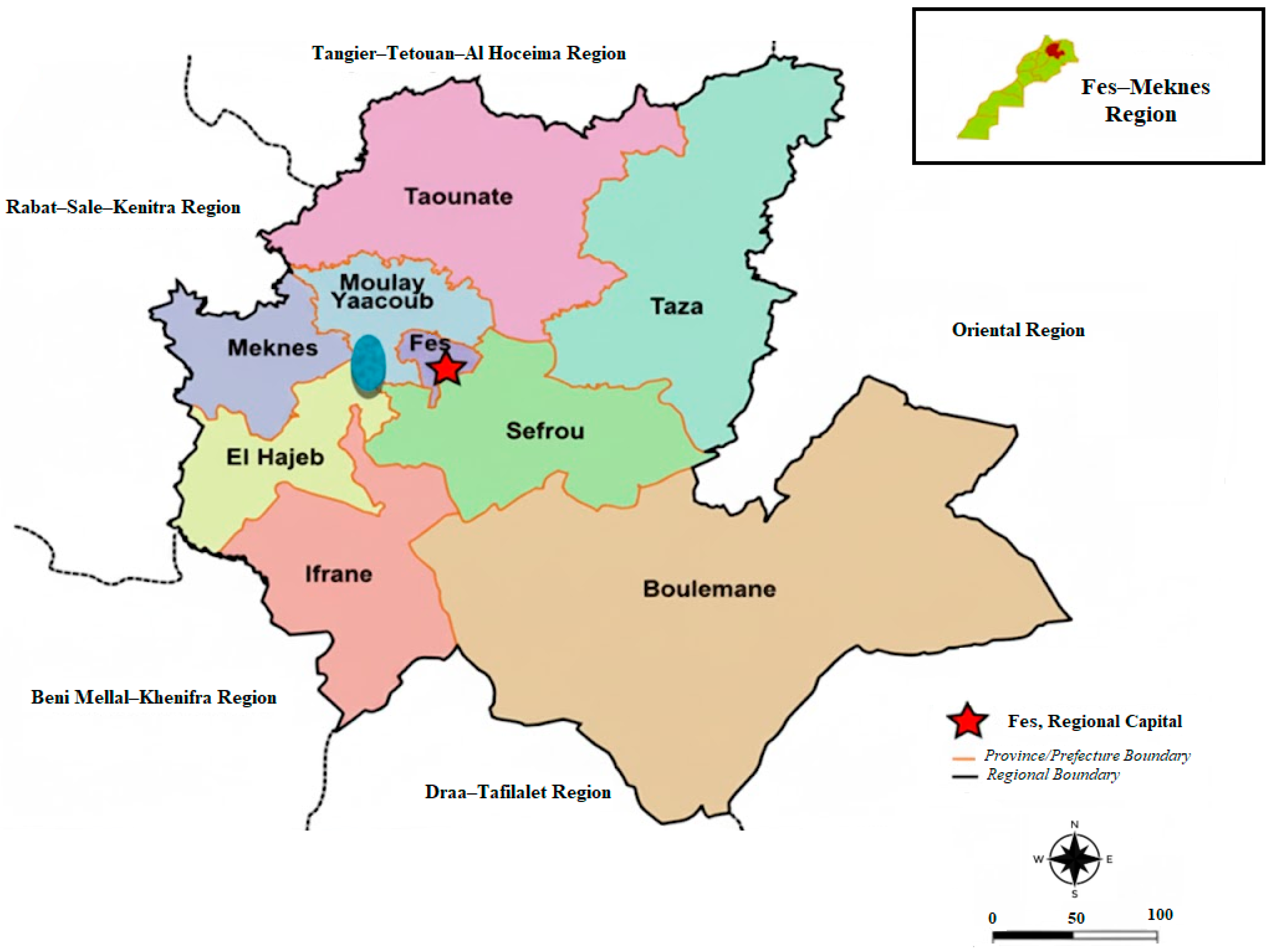 - Aboulkacem, A.; Chahlaoui, A.; Soulaymani, A.; Rhazi-Filali, F.; Benali, D. Etude comparative de la qualité bactériologique des eaux des oueds Boufekrane et Ouislane à la traversée de la ville de Meknès (Maroc). Rev. Microbiol. Ind. San. Environ. 2007, 1, 10–22. [Google Scholar]