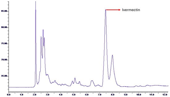 To analytically corroborate the presence of the secondary metabolite Ivermectin, a high-performance liquid chromatograph (HPLC, Perkin Elmer, serves 200, Waltham 02451, Massachusetts, USA) coupled to a UV-Vis detector (Perkin Elmer, Waltham 02451, MA, USA) was used. The chromatographic method for HPLC used in this analysis is listed in Table 1.