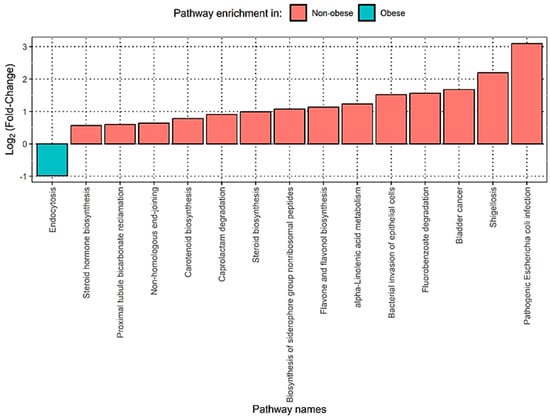 3.4. Functional Analysis Shows That Obese Patients Have Significantly Enriched Pathways Related to Bacterial Infections in the Gut Microbiome