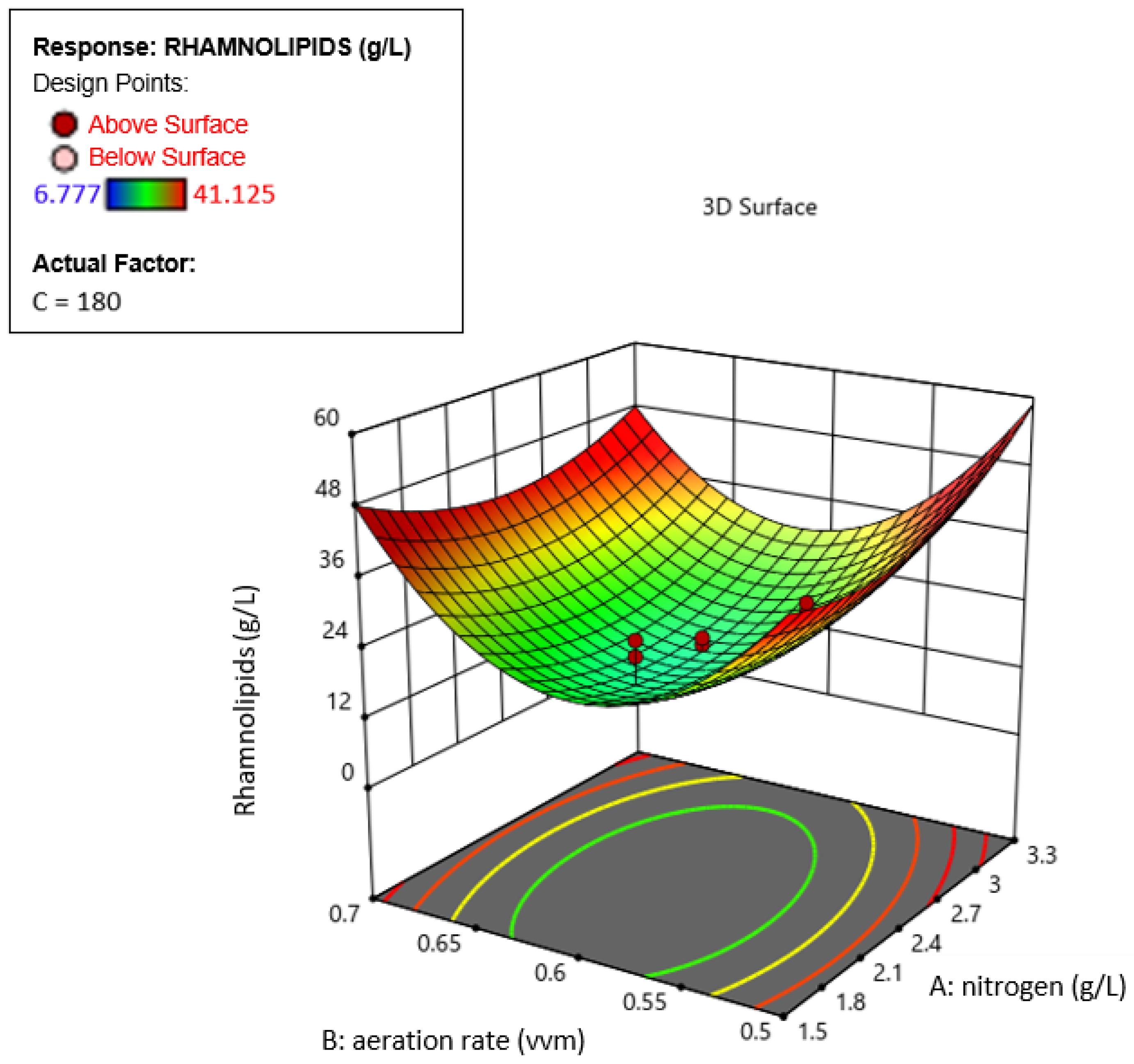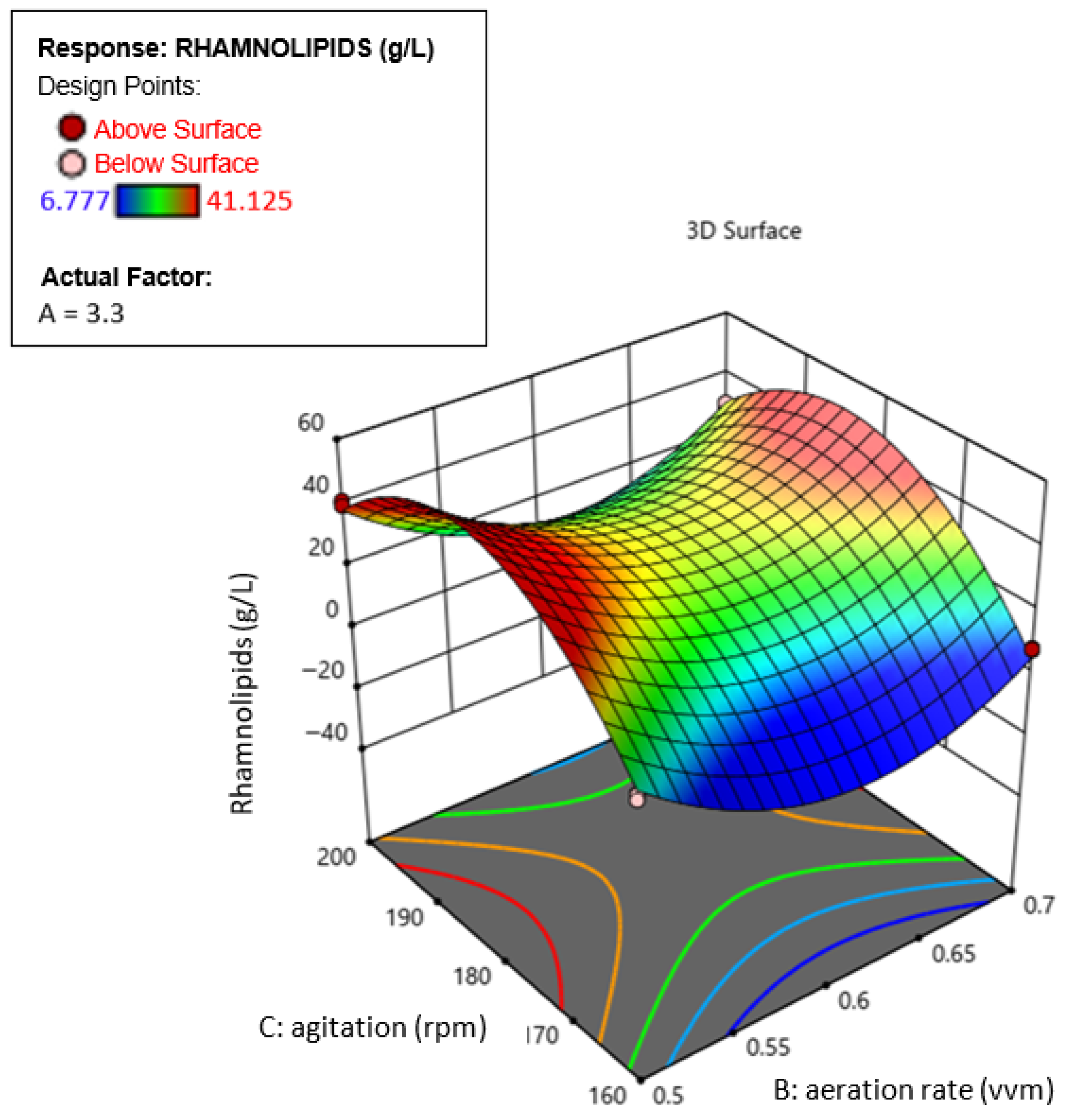 3.3. Experimental Design and Predictive Model for Rhamnolipid Production