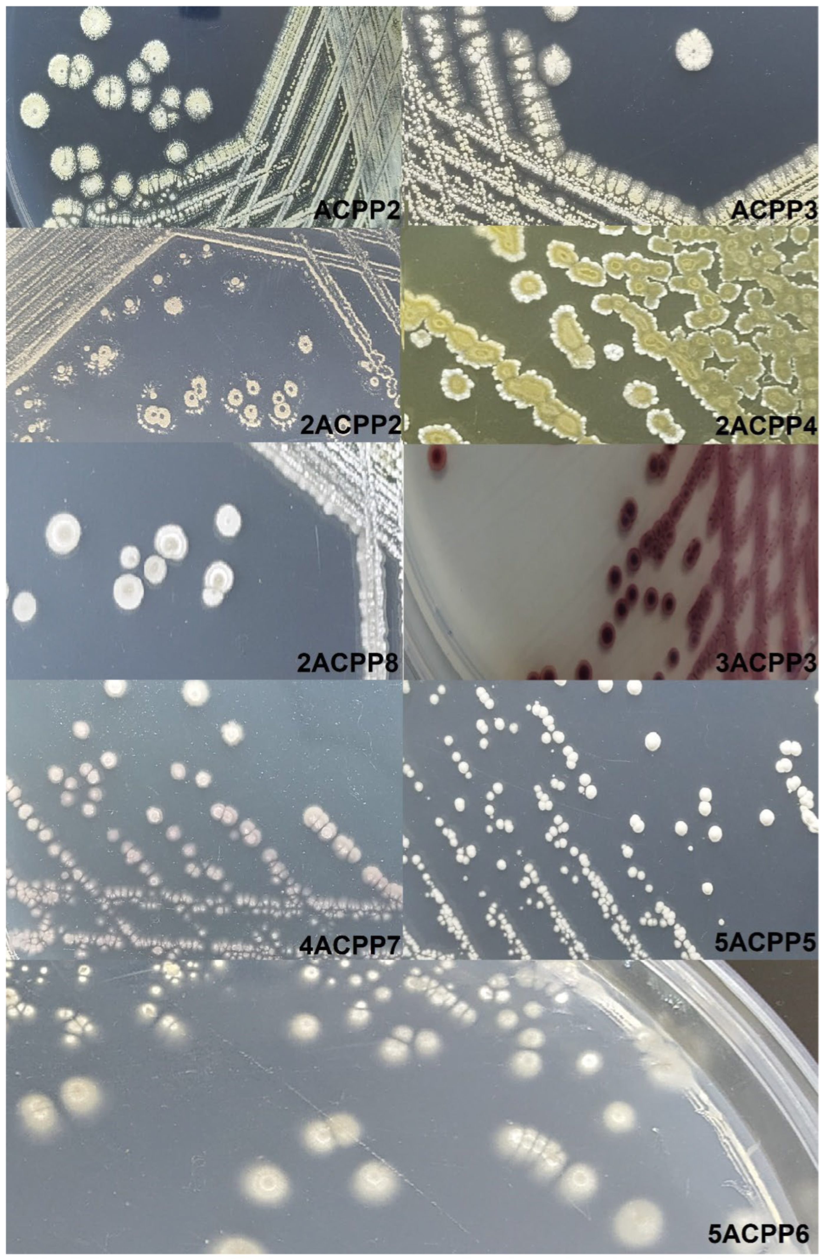 - Uesugi, J.H.E.; dos Santos Caldas, D.; Coelho, B.B.F.; Prazes, M.C.C.; Omura, L.Y.E.; Pismel, J.A.R.; Bezerra, N.V. Morphological Diversity of Actinobacteria Isolated from Oil Palm Compost (Elaeis guineensis). Braz. J. Microbiol. 2024, 55, 455–469. [Google Scholar] [CrossRef]