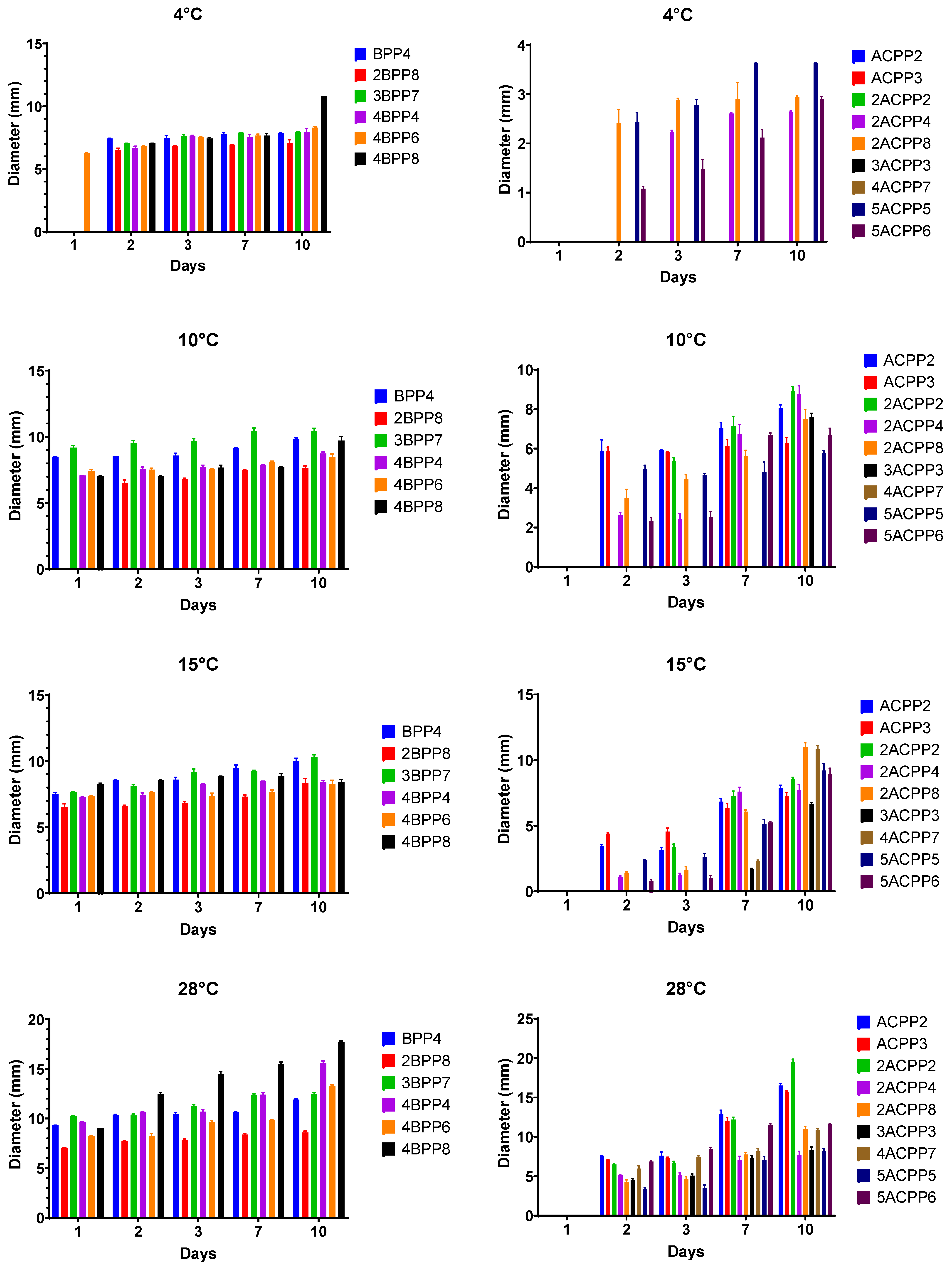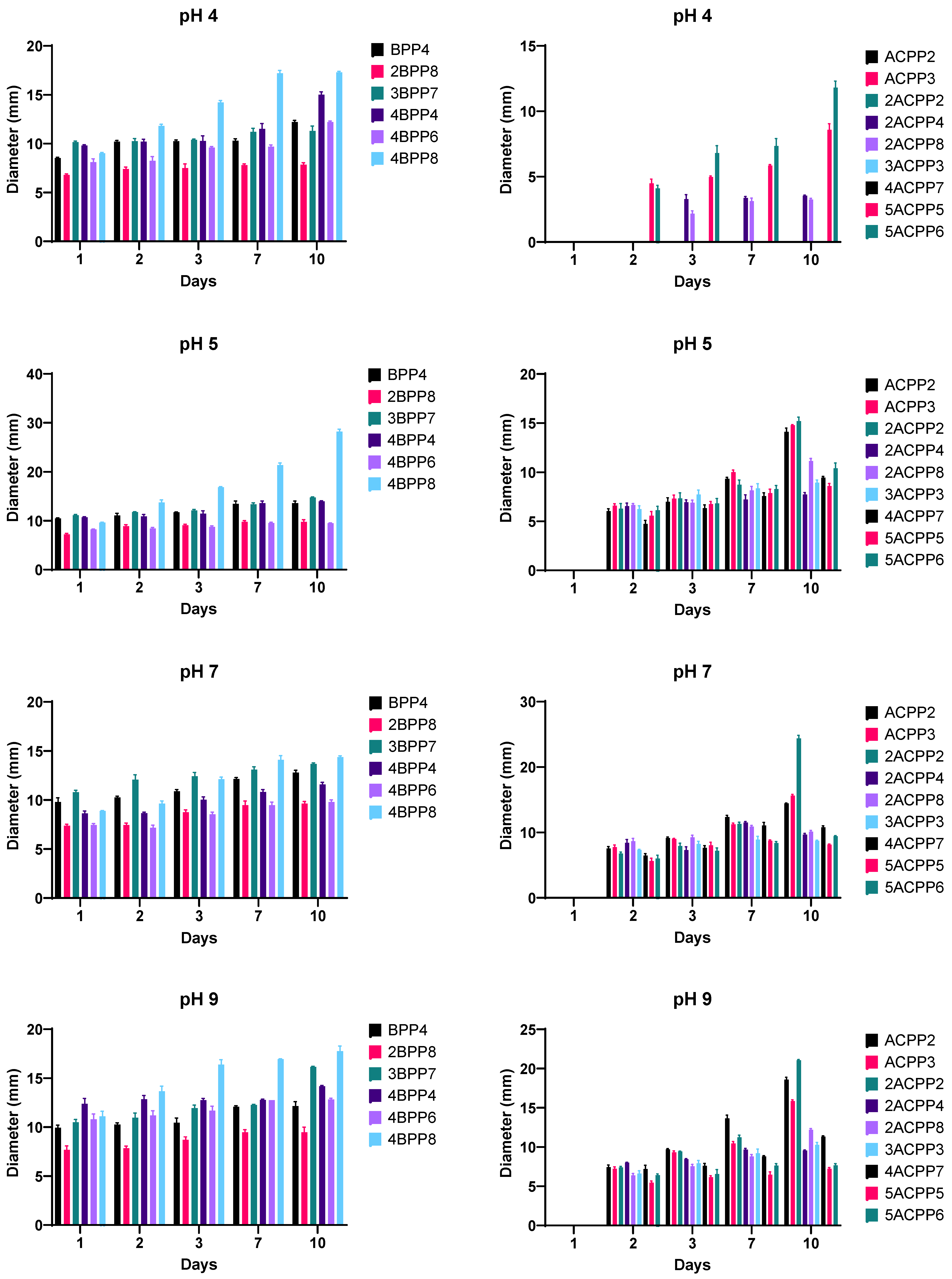 | Strains/Days | Bi-Calcium Phosphate | |||||