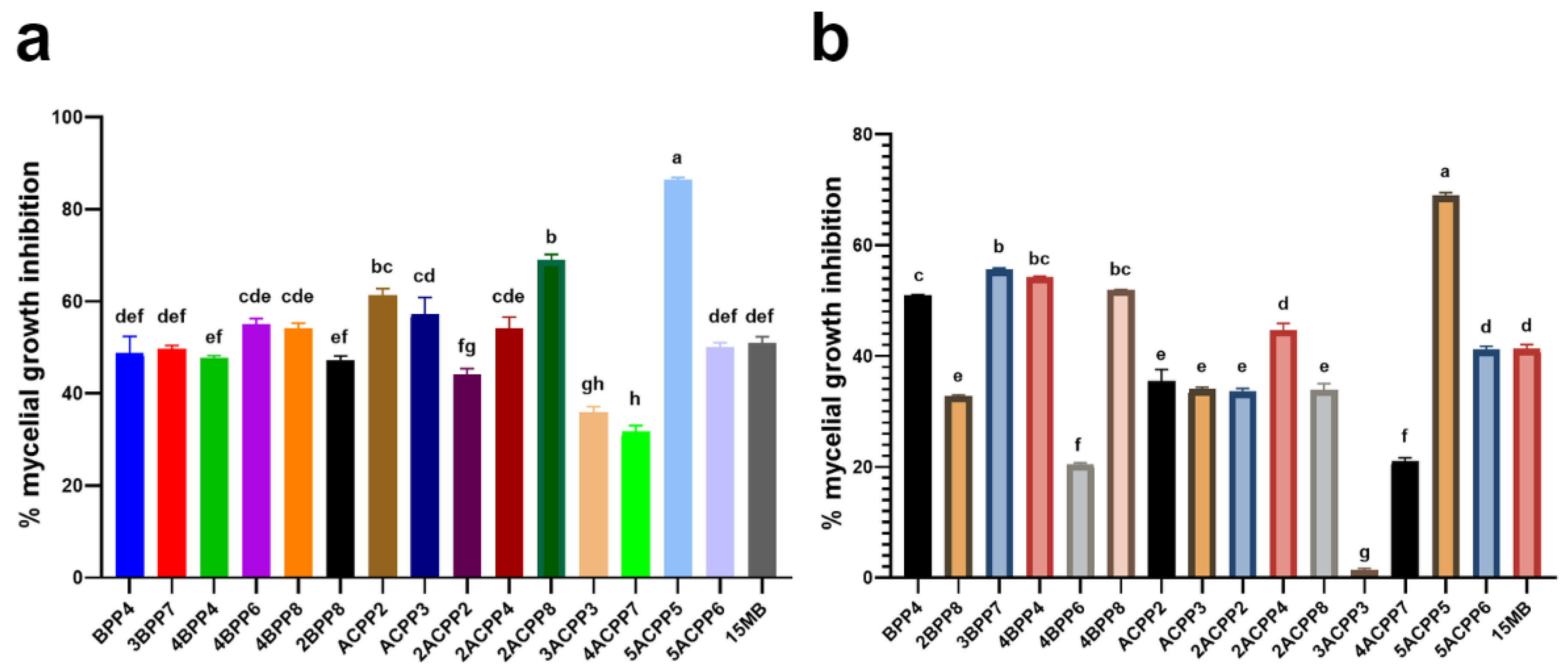 - Ali, A.; Iftikhar, Y.; Mubeen, M.; Ali, H.; Ahmad Zeshan, M.; Asad, Z.; Zafar-ul-Hye, M.; Abdul Rehman, M.; Abbas, M.; Rafique, M.; et al. Antagonistic Potential of Bacterial Species against Fungal Plant Pathogens (FPP) and Their Role in Plant Growth Promotion (PGP): A Review. Phyton 2022, 91, 1859–1877. [Google Scholar] [CrossRef]
