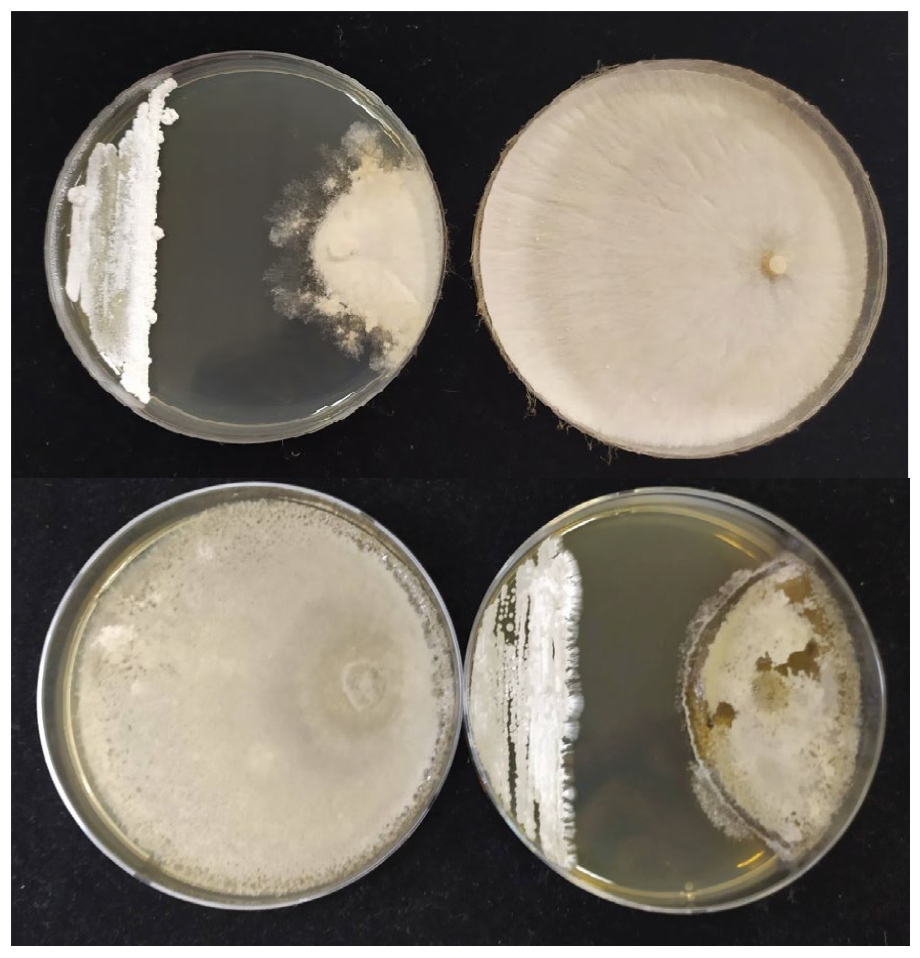 - García-Espejo, C.N.; Mamani-Mamani, M.M.; Chávez-Lizárraga, G.A.; Álvarez-Aliaga, M.T. Evaluación de La Actividad Enzimática Del Trichoderma Inhamatum (BOL-12 QD) Como Posible Biocontrolador. J. Selva Andin. Res. Soc. 2016, 7, 20–32. [Google Scholar] [CrossRef]