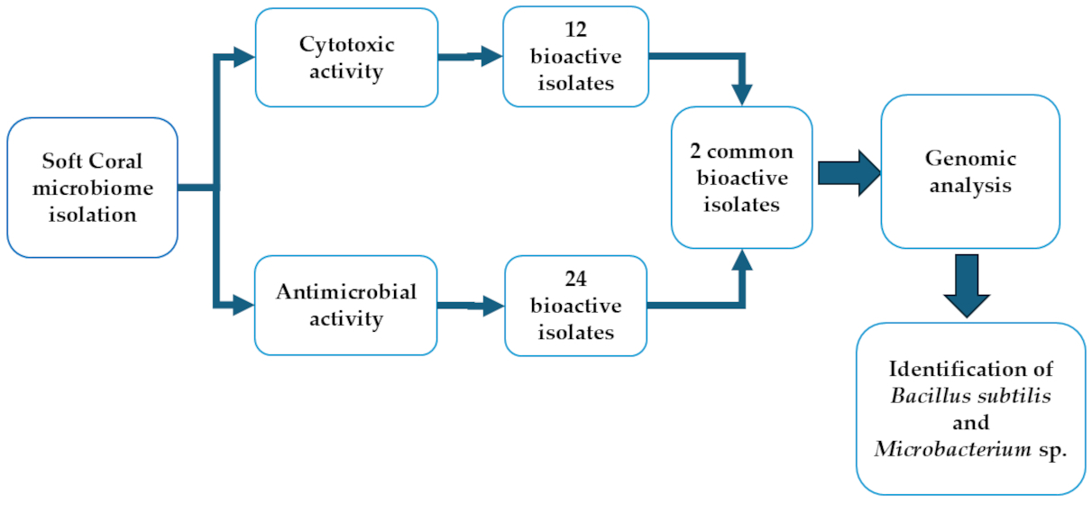 2.3. Isolation of Soft Coral-Associated Bacteria