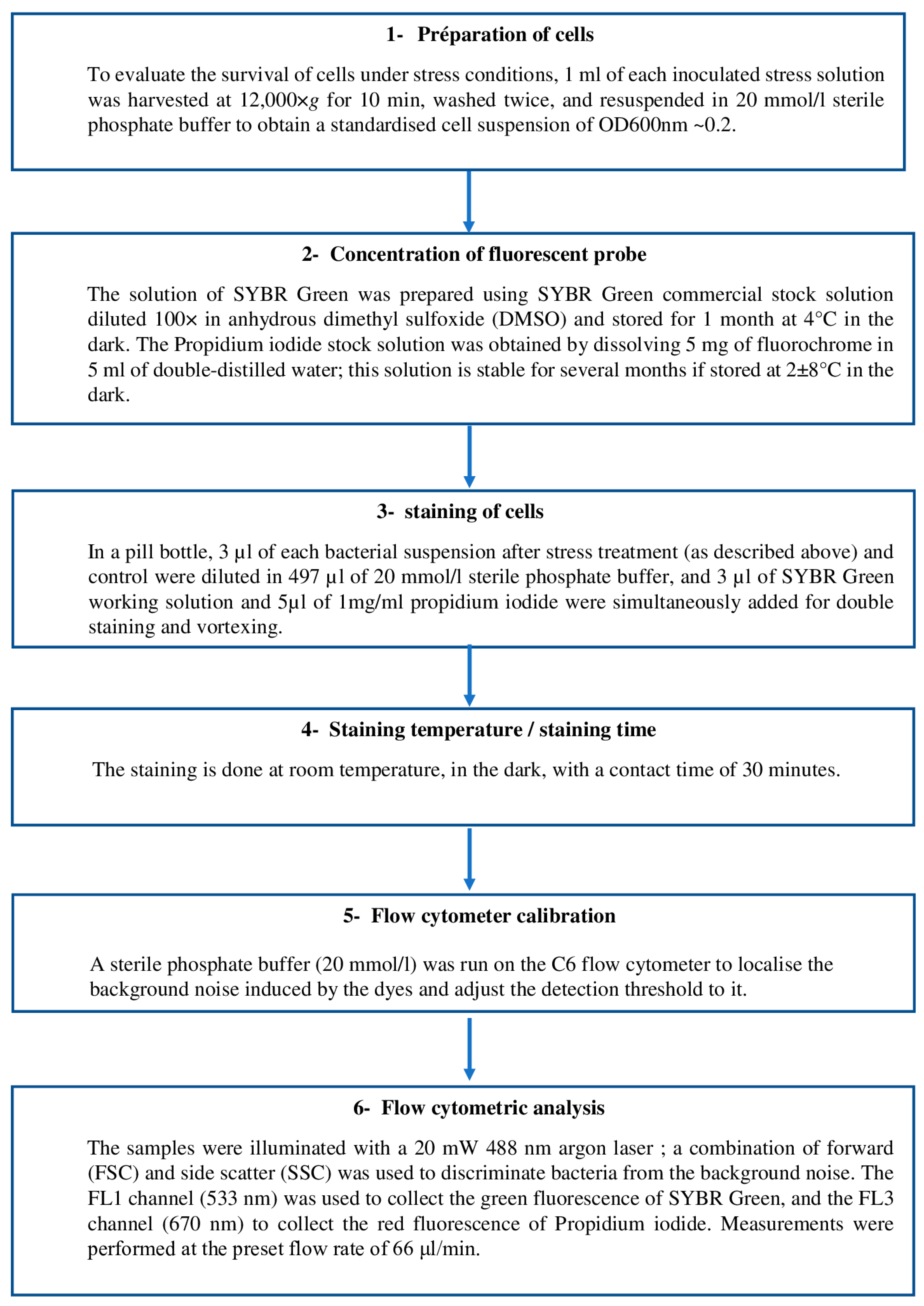 Aouimeur H, Boublenza F, Gerald G, Barani A, Makhlouf Y. Assessment of Stress Tolerance of Enterococcus faecium and Enterococcus durans Strains by Flow Cytometry Using NADS Protocol and Traditional Culture Methods. Applied Microbiology. 2026; 6(2):24. https://doi.org/10.3390/applmicrobiol6020024