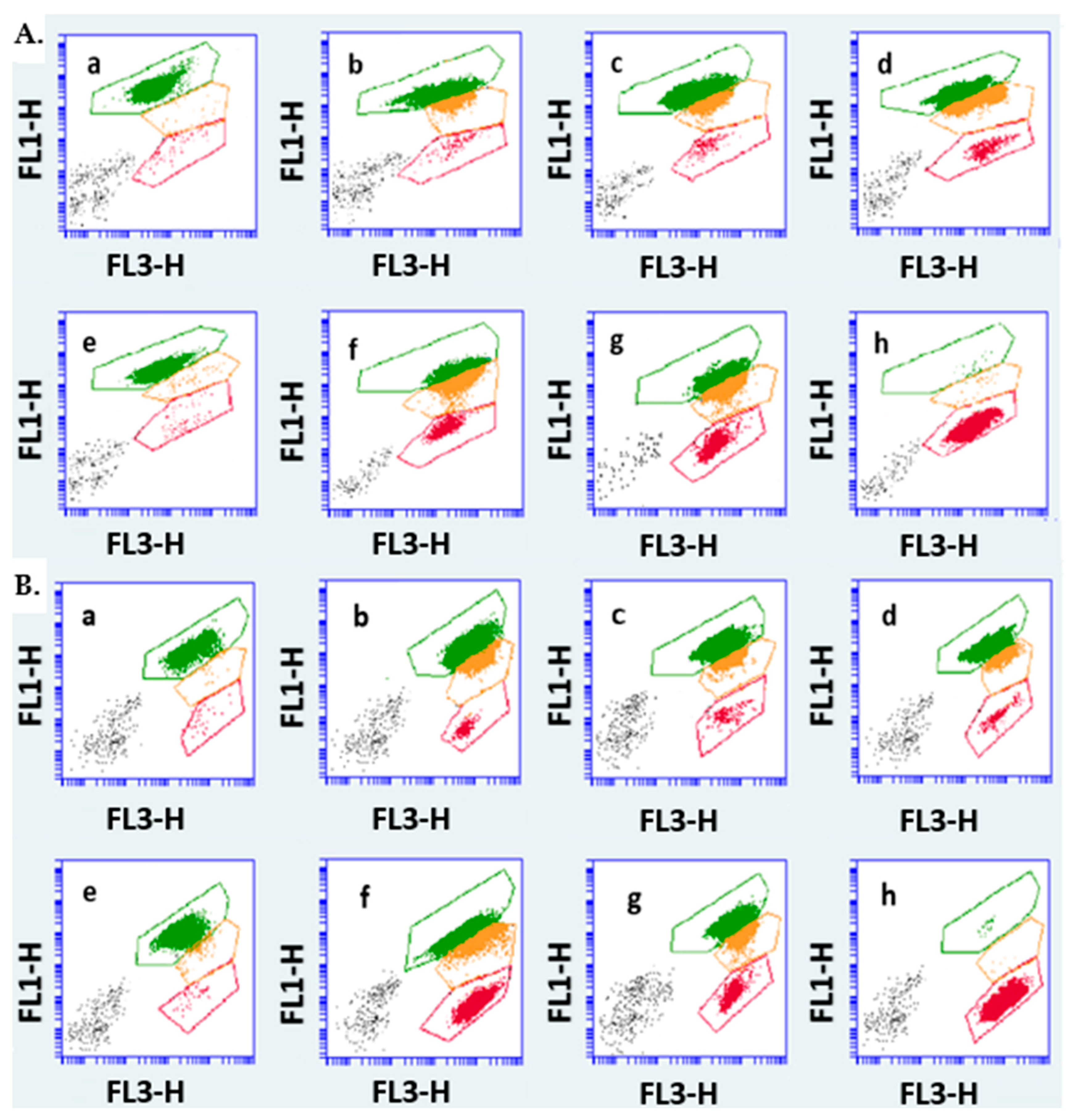 3.2. Assessment of Cell Viability and Membrane Integrity by FCM