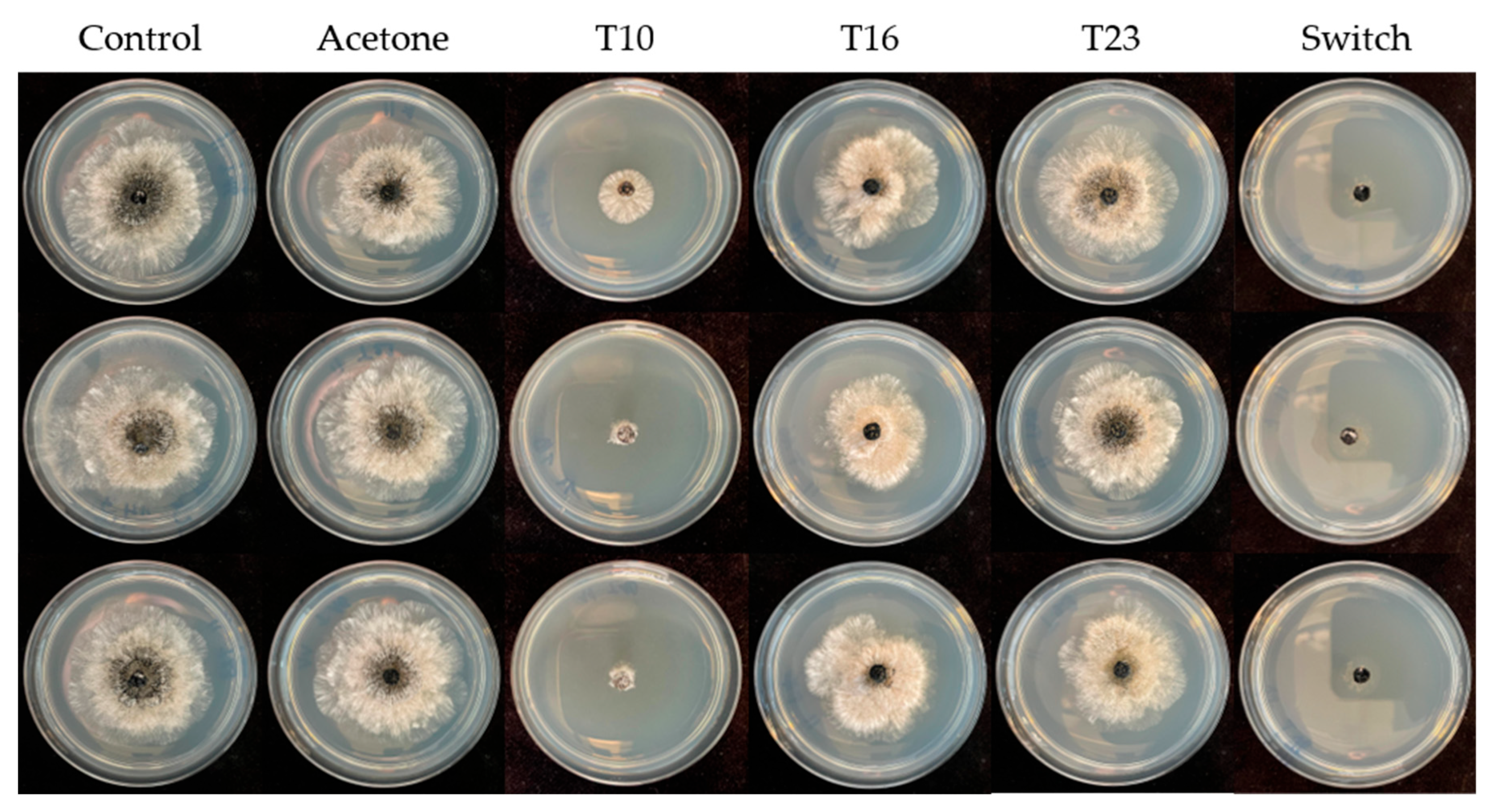 3.2. Poisoned Agar Plug Assay