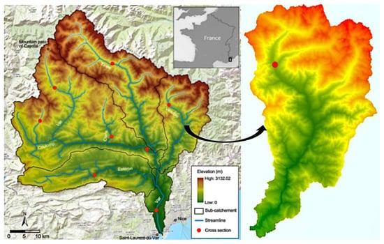 The Vésubie River begins with a flow of water from the high alpine of north town Saint-Martin-Vésubie from the border of Italy, which eventually joins the Upper Var of the Var River and connects to the Var’s outflow. France’s fifth biggest city Nice is located there and frequently suffered flood hazards during the flood events because of the steep slope distributed all over the catchment, the concentration-time during the flood event became relatively short.