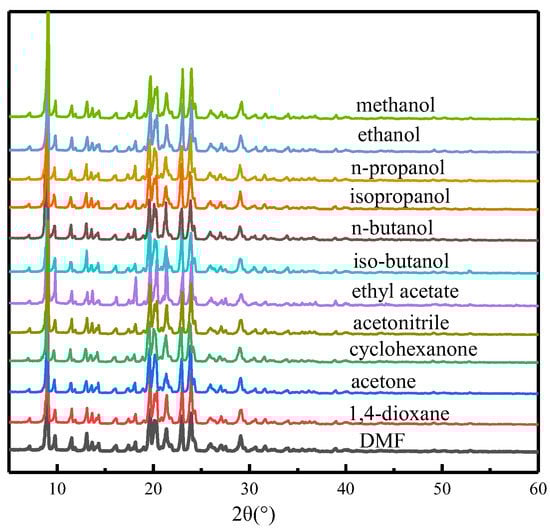 The XRD curves of ethyl candesartan recrystallized from each solvent.