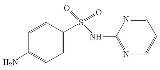 Sulfadiazine (SD, CHNOS, CAS Number: 68-35-9, Figure 1) is a broad-spectrum, fast-acting, synthetic bacteriostatic agent effective against most gram-positive and many gram-negative bacteria; it is used in human and veterinary therapy for the treatment of infections [1,2].