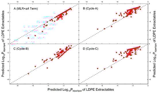 The model for the LDPE-hexane partition constants () has been constructed previously [33], as indicated by Equation (3) (and System L in Table 1).