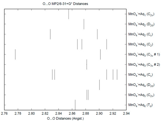 The O...O distances (MP2/6-31+G*) in hydrated permanganate.