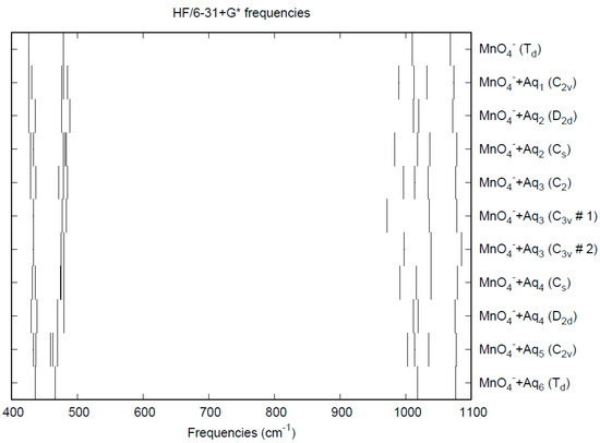 Vibrational frequencies (HF/6-31+G*) of hydrated permanganate.
