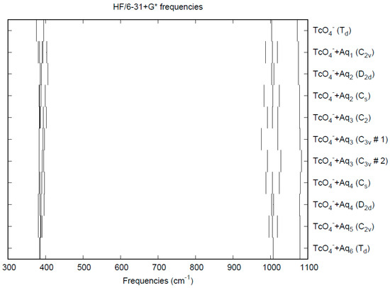 Vibrational frequencies (HF/6-31+G*) of hydrated pertechnetate.
